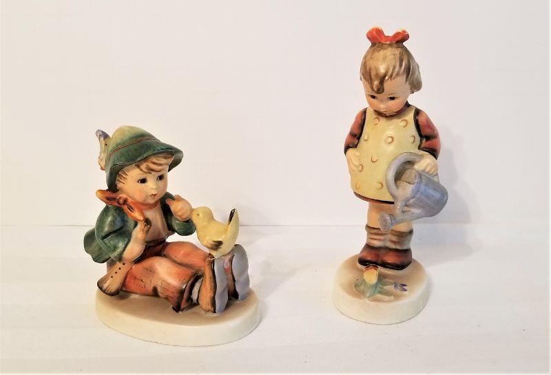 Two sweet little Hummel figurines - older mark. No box. Great condition - girl is 4" tall.