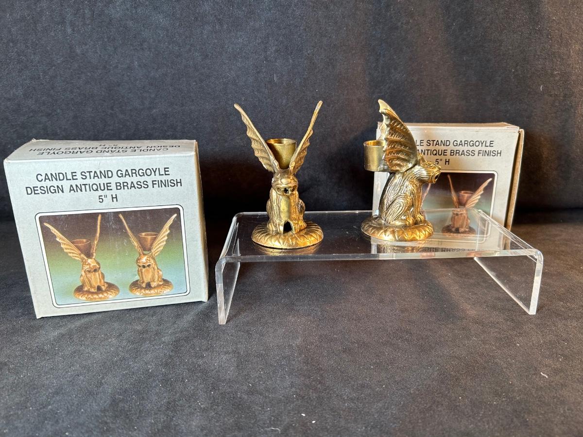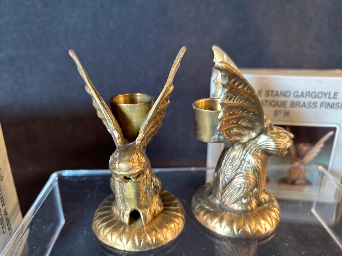 Lot 54. Two Pair of Brass Gargoyle Candle Holders