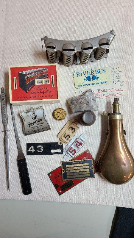 Lot 54:  Vintage Bank, Gunpowder Flask and More