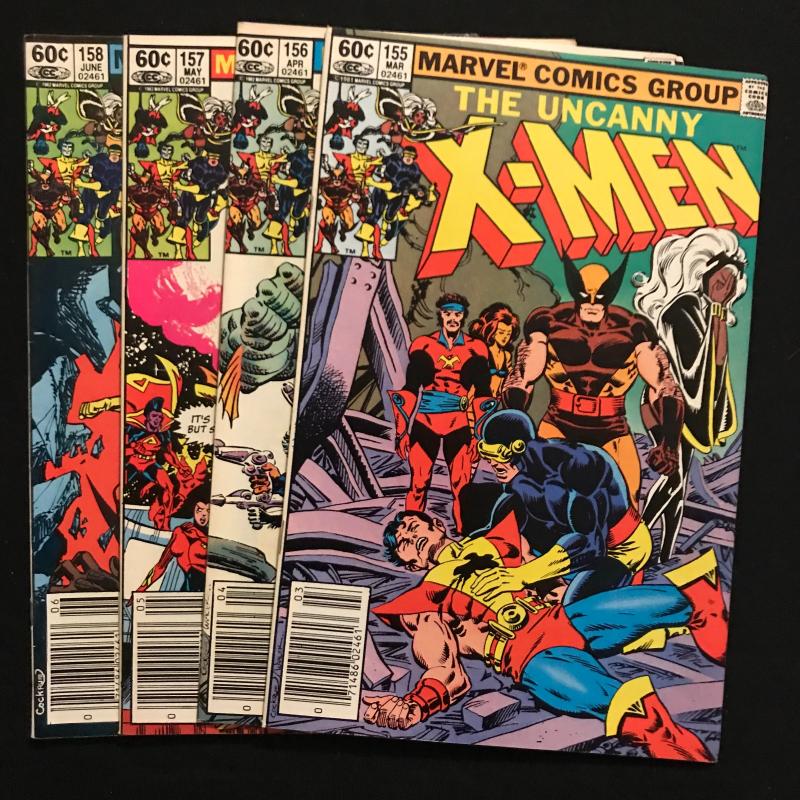 Huge lot of "X-Men" by Marvel. Includes Vol 2 , No 1 Dec 1979. Also includes annuals from No 3, 1979 to No 11, 1987. This lot has several limited series issues. Includes two issues of No 154 with slightly different covers. Nice lot with very few missing numbers after No 150. See photos for details. 148 total issues in this lot. Fits in THREE Priority boxes for shipping or local pick up in Asheville, NC.