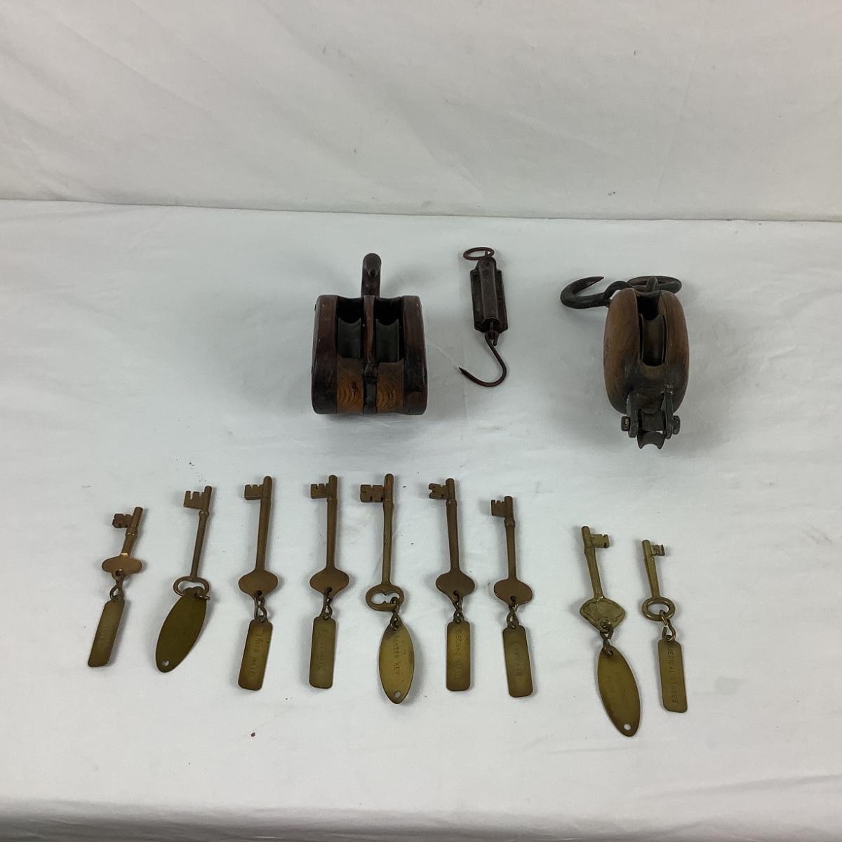 Lot. 5400. Vintage Wooden Double Barn Pulley / Vintage Wooden Pulley / Vintage Ships Keys