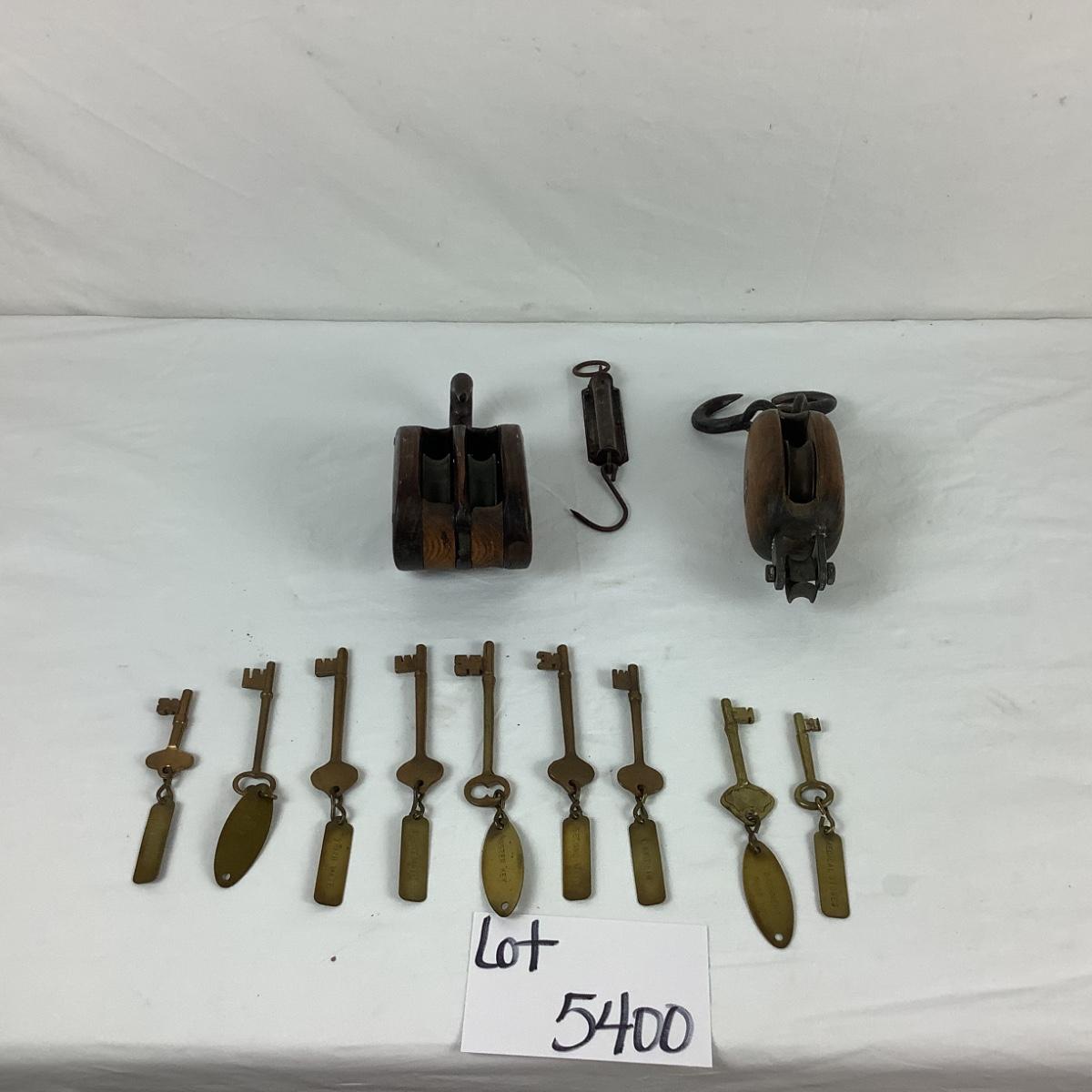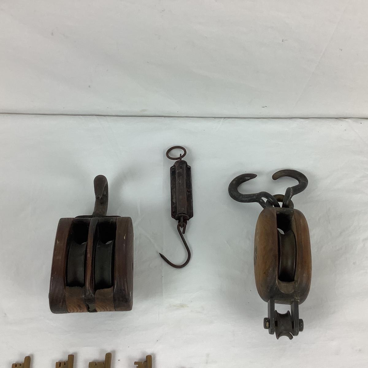 Lot. 5400.  Vintage Wooden Double Barn Pulley / Vintage Wooden Pulley / Vintage Ships  Keys