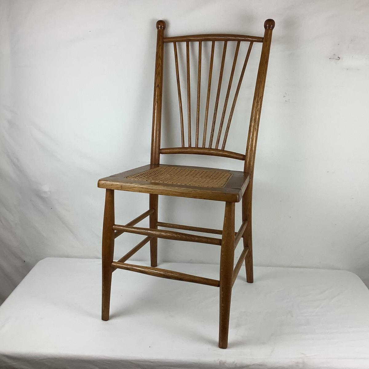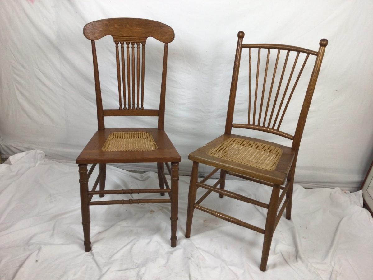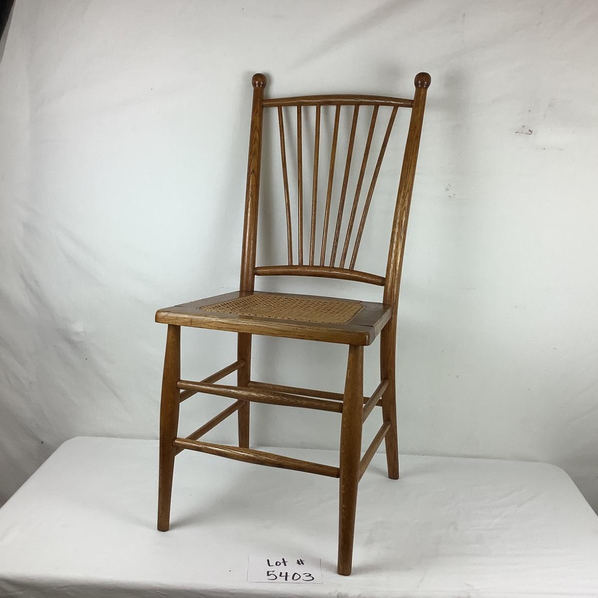 Lot. 5403. Two Vintage Oak Spindle Back Cane Chairs