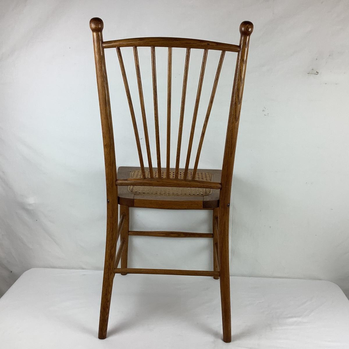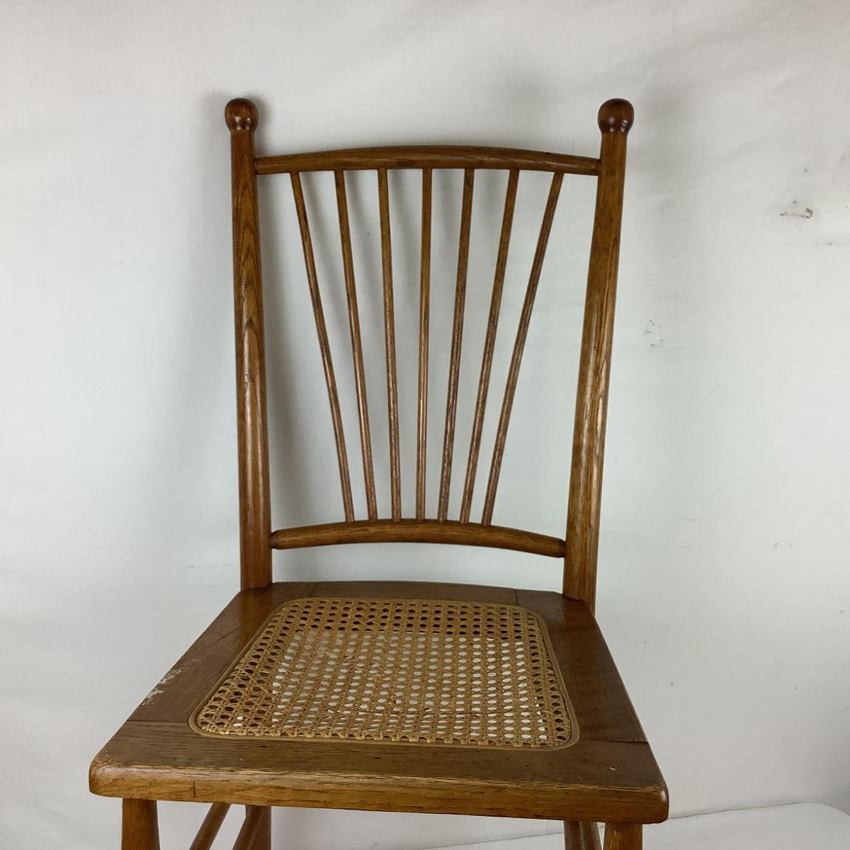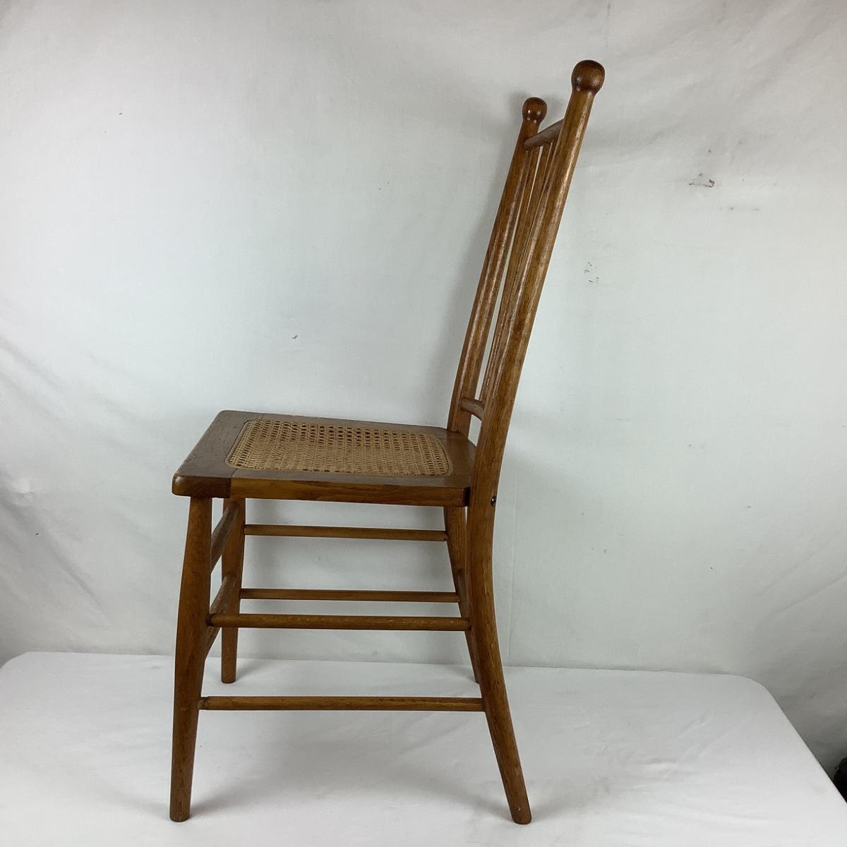 Lot. 5403. Two Vintage Oak Spindle Back Cane Chairs