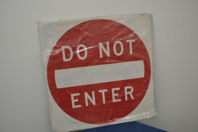 DO NOT ENTER SIGN FULL SIZE IN PLASTIC WRAP NEVER USED. 24" X 24"