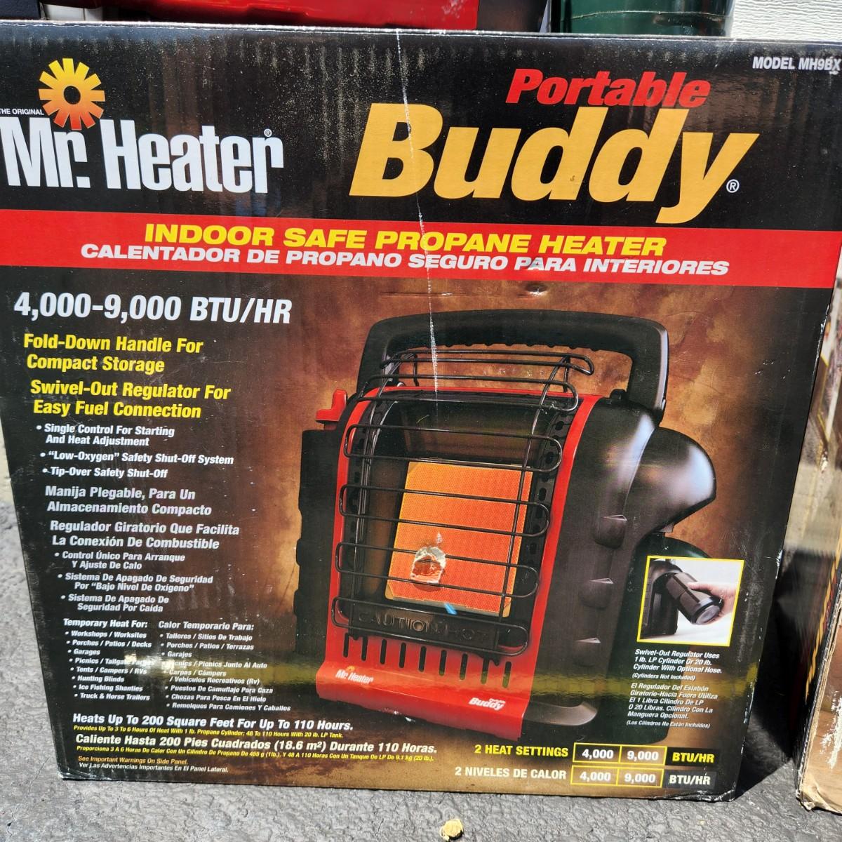 Two propane portable heaters. Great for your garage, camping, etc. The larger one is 4000-9000 BTU's and the smaller one heats up to 95 square feet. Both in great condition. Untested. Please see all pictures as they are the best representation of the items. The pictures show condition, measurements if taken, and what is included in the lot. Due to the large amount that we photograph and the time frame, we are not always able to take measurements. All items unless noted, are pre-owned and have been used. If you purchased furniture, you must bring help. We do not allow one person to carry large furniture out on their own. Bring help, tools and a truck for the safety of our client’s homes, and your personal safety. Any damages that result to the property including walls, and floors due to moving of the furniture will be charged to the buyer. Company policy. Thank you.