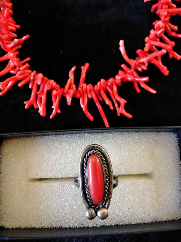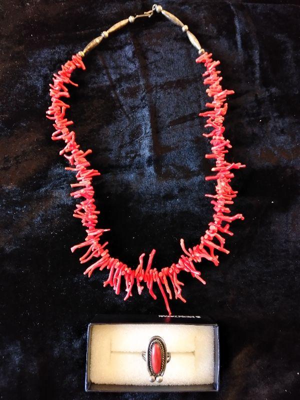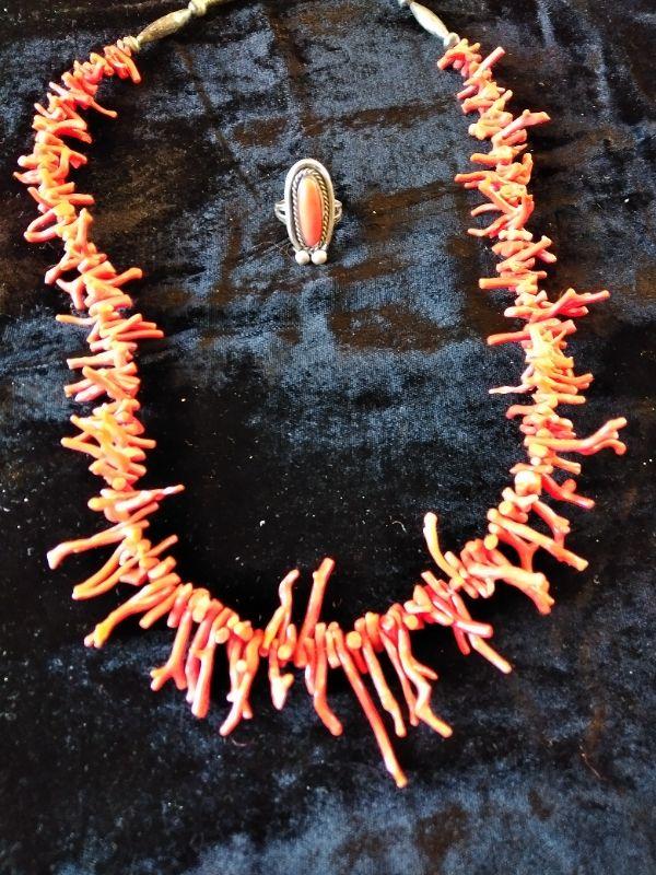 PINK CORAL NECKLACE WITH CORAL COLORED RING.