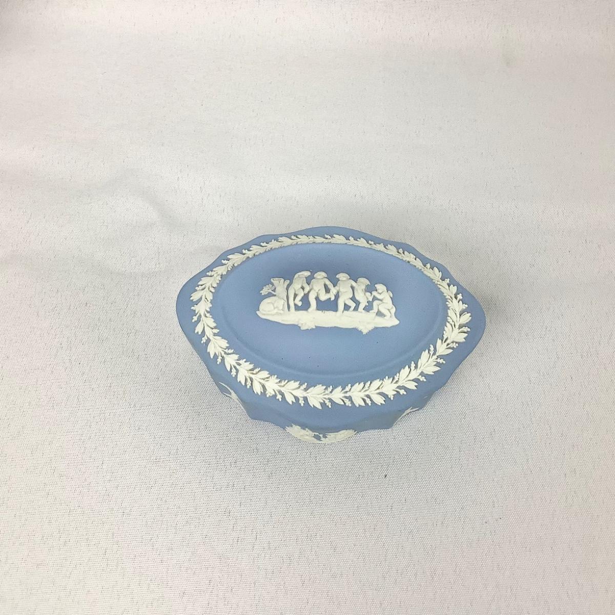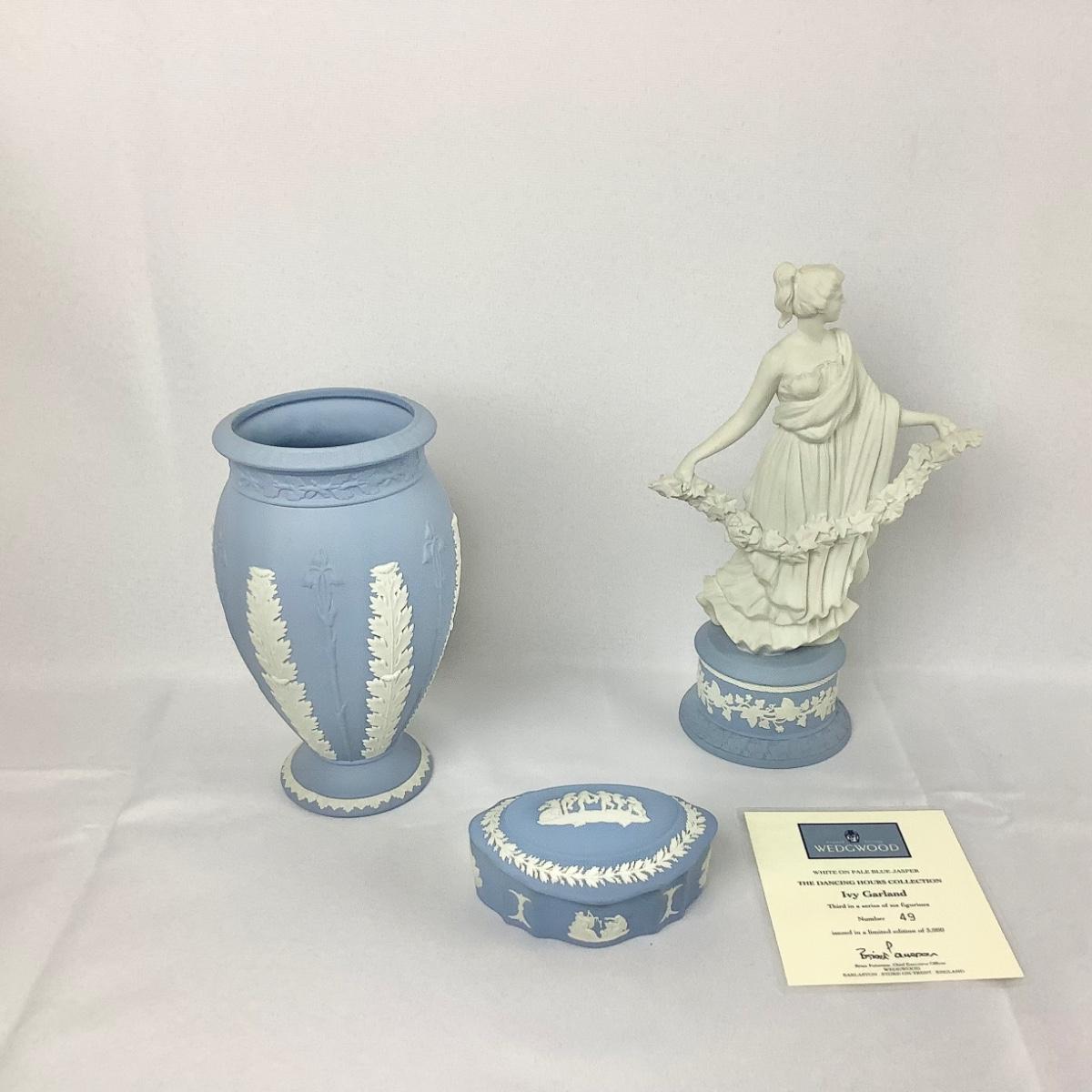 Lot 542 WEDGWOOD, Signed 1999 “ The Dancing Hours Collection “ Ivy Garland “ #49, Oval Trinket Box, Tall Vase