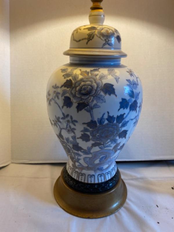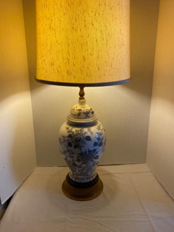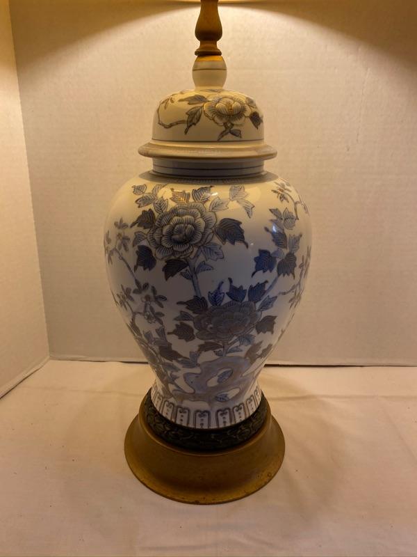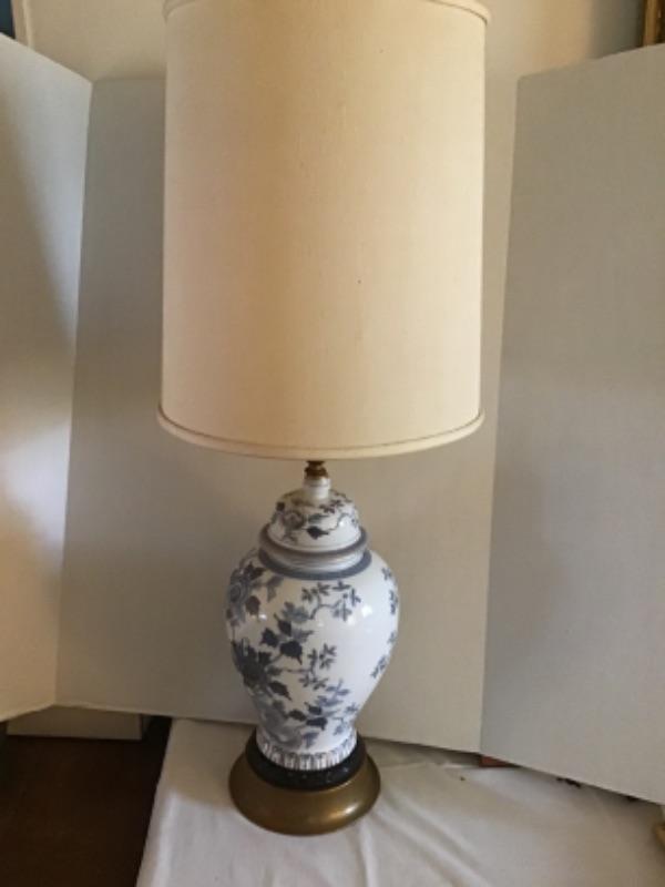 Blue / White Ginger Jar Lamp with Shade. 36”T