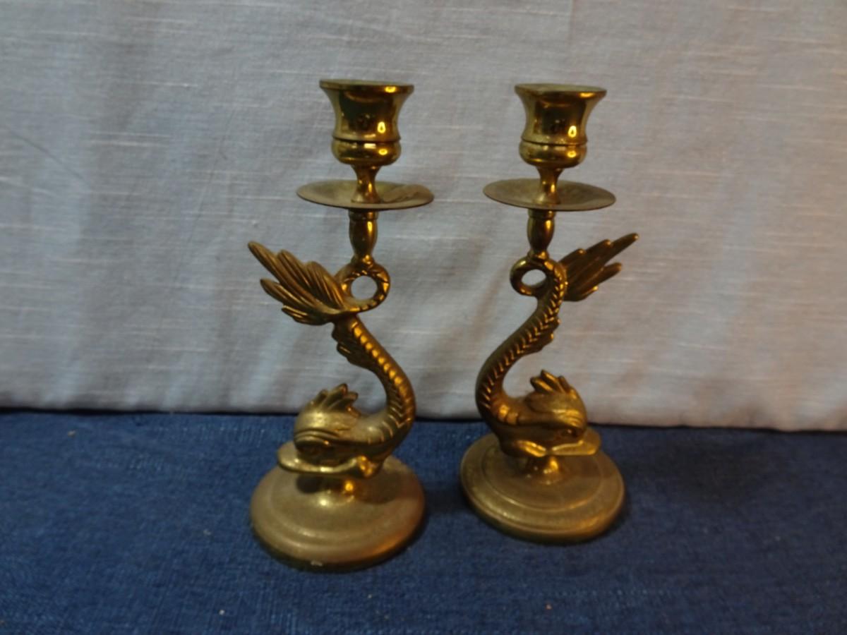 LOT 543. BRASS FISH CANLDE HOLDERS