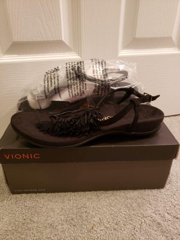 Lot 544: Brand New Vionic Black Fringe Sandals