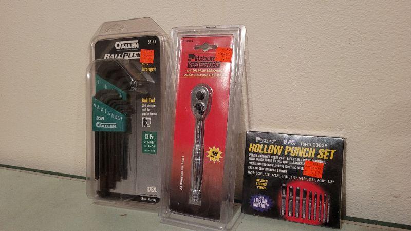 Lot 544: Assorted NEW Tools - (Punch Set, Allen Wrench Set & Quick Release Ratchet)