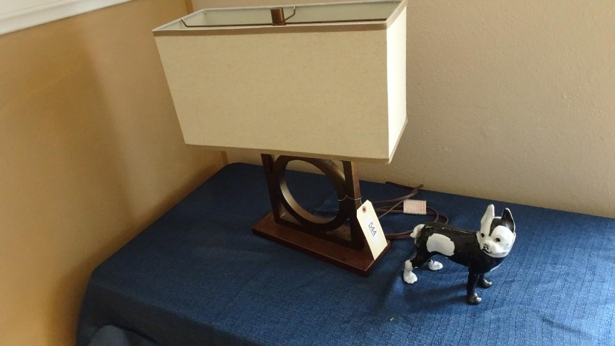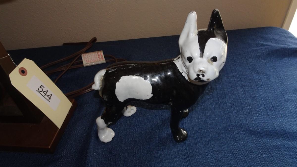 LOT 544  TABLE LAMP AND METAL DOG FIGURINE