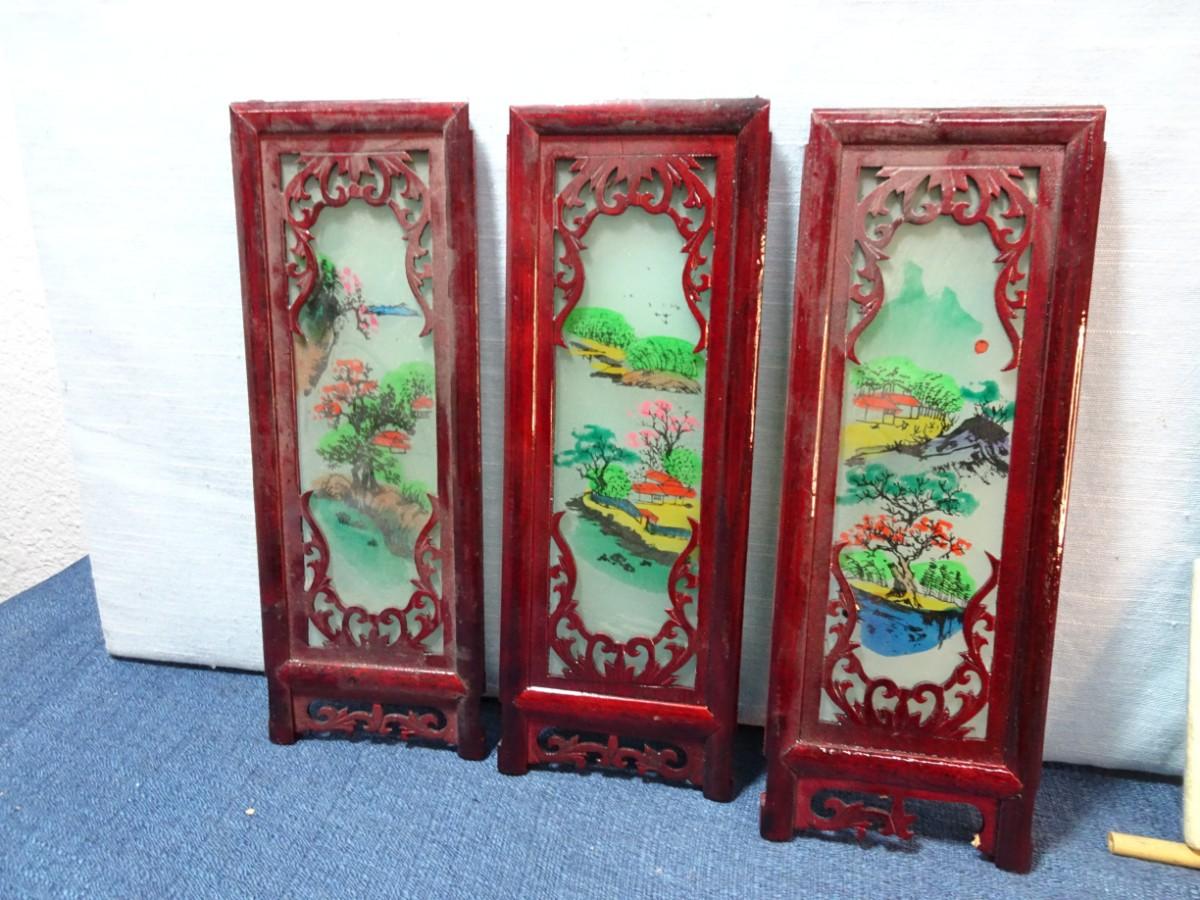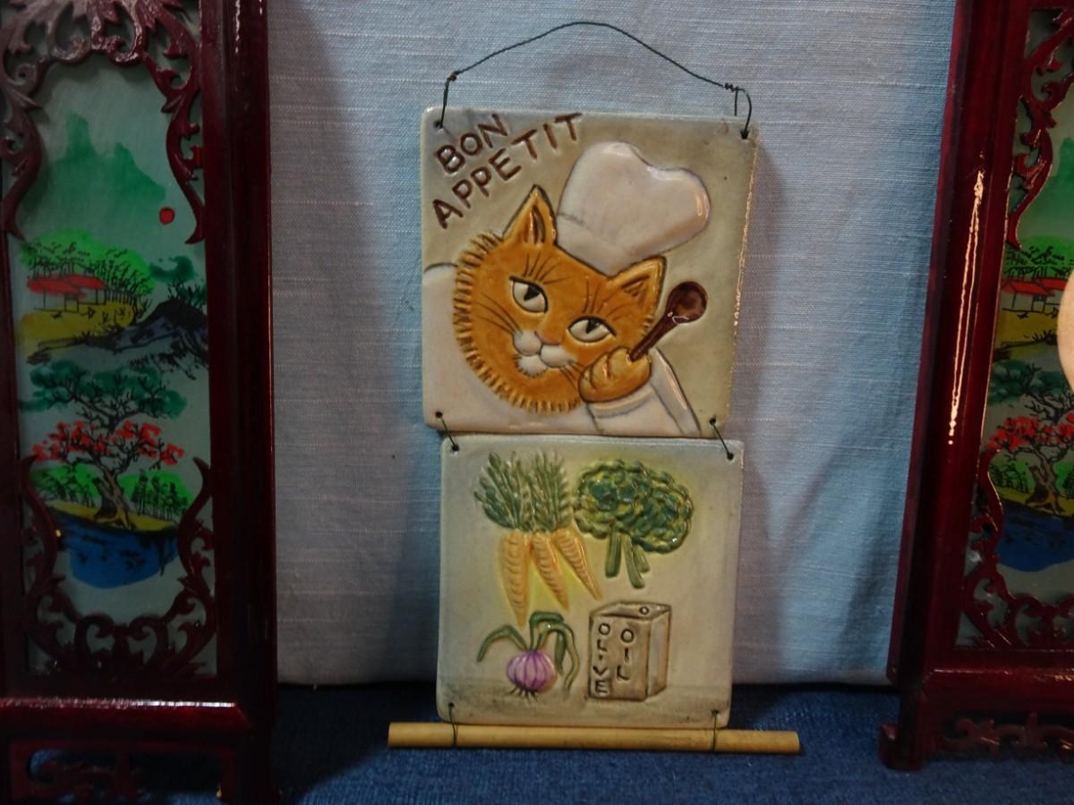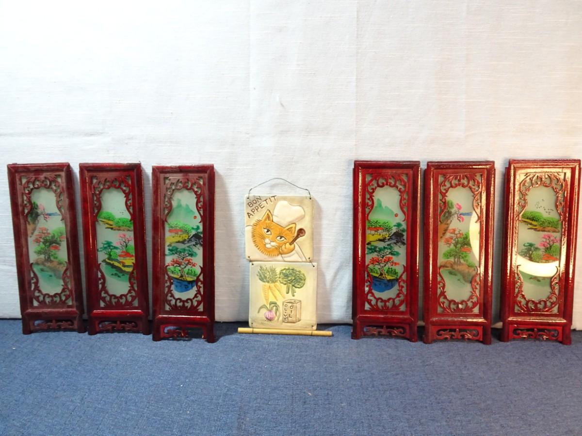 LOT 544. CAT WALL HANGING DECOR AND PIECES OF ASIAN LAMP