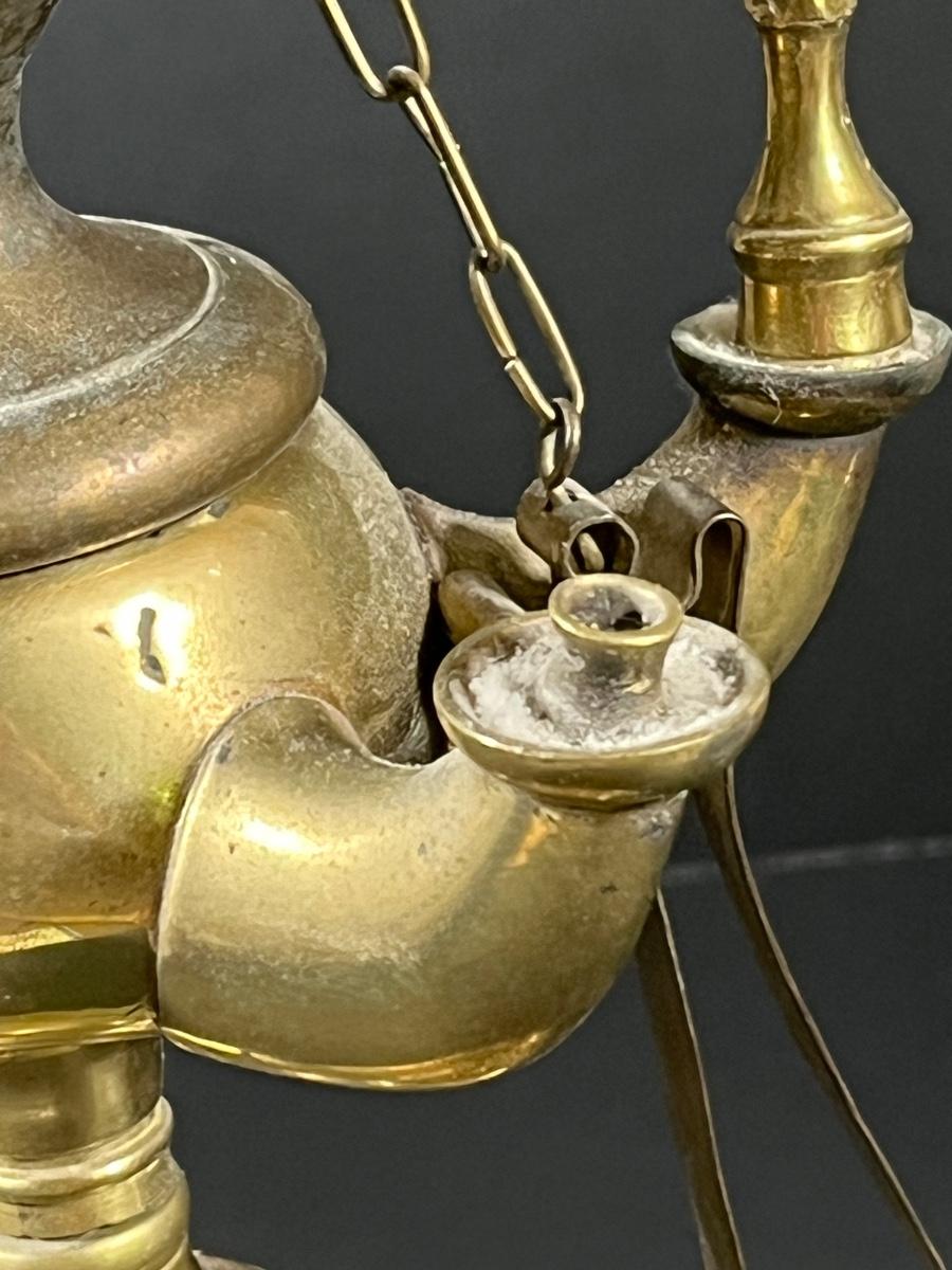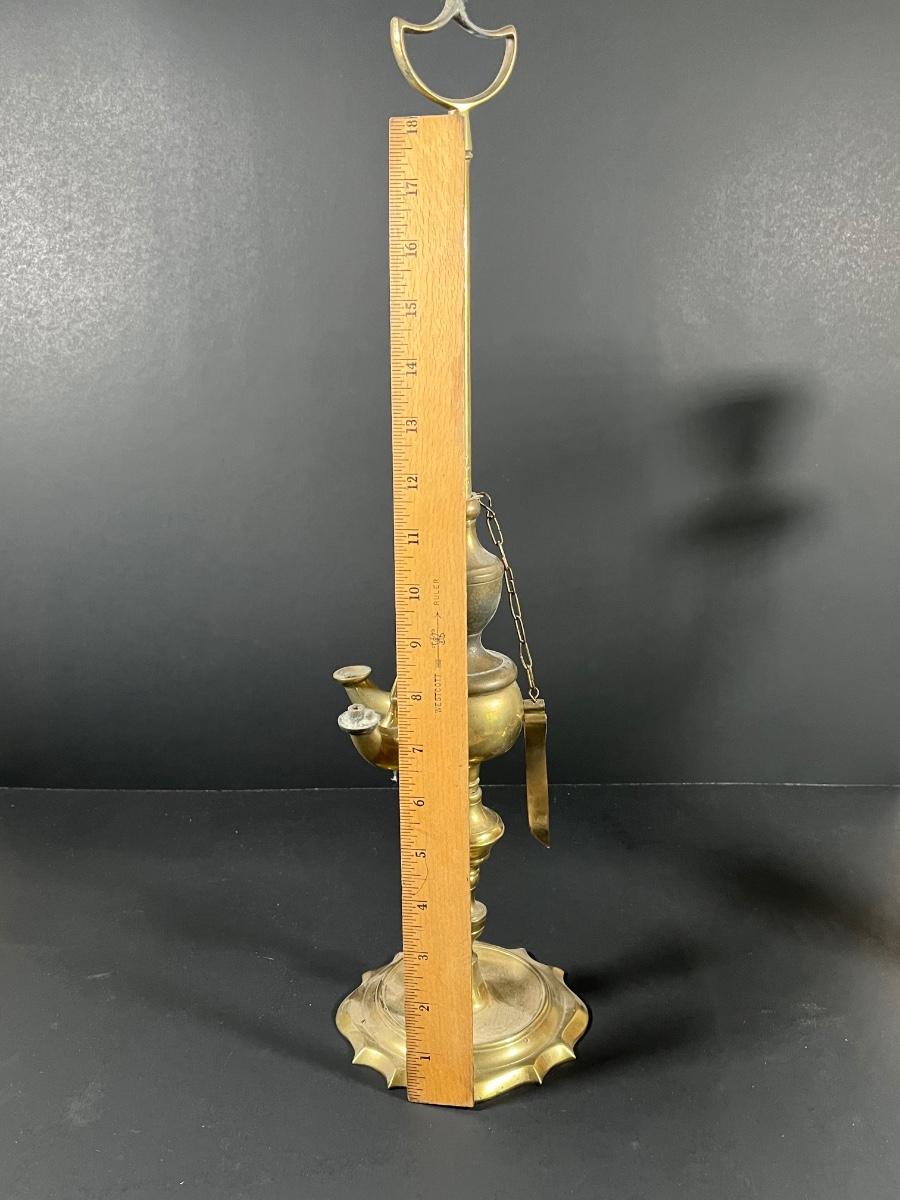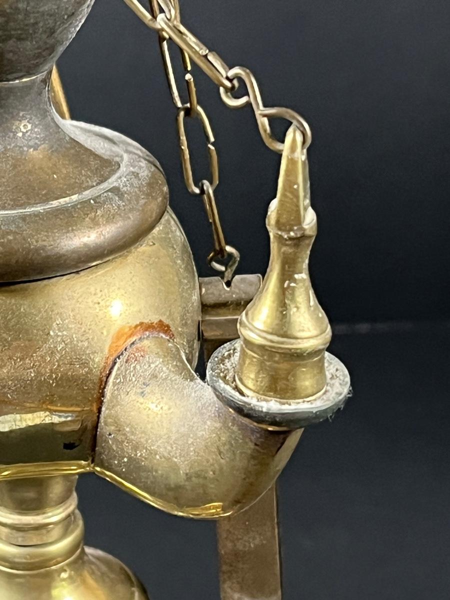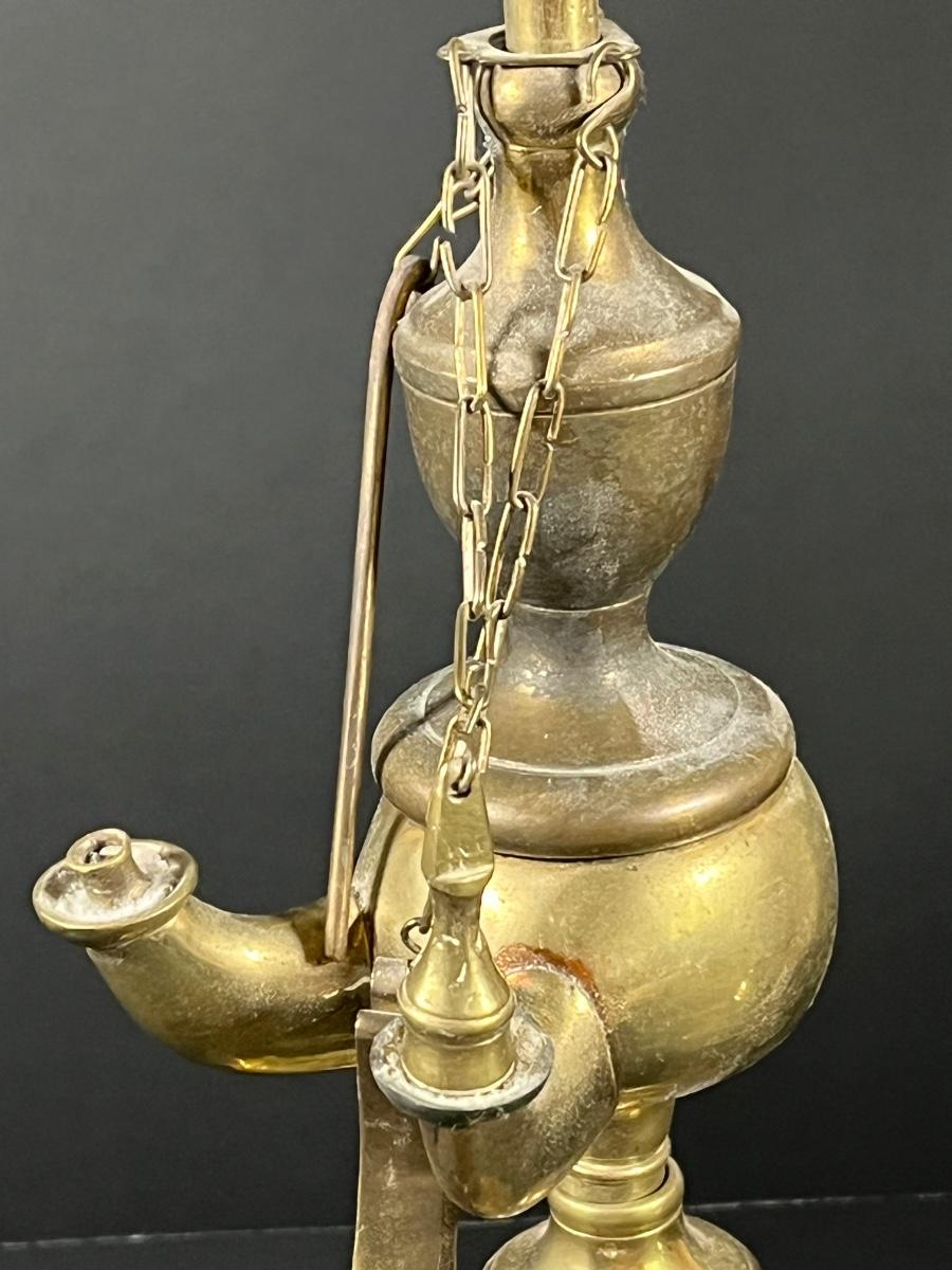 LOT 544D: Antique Two-Burner Brass Oil Lamp (Lucerne) w/ Attached Tools