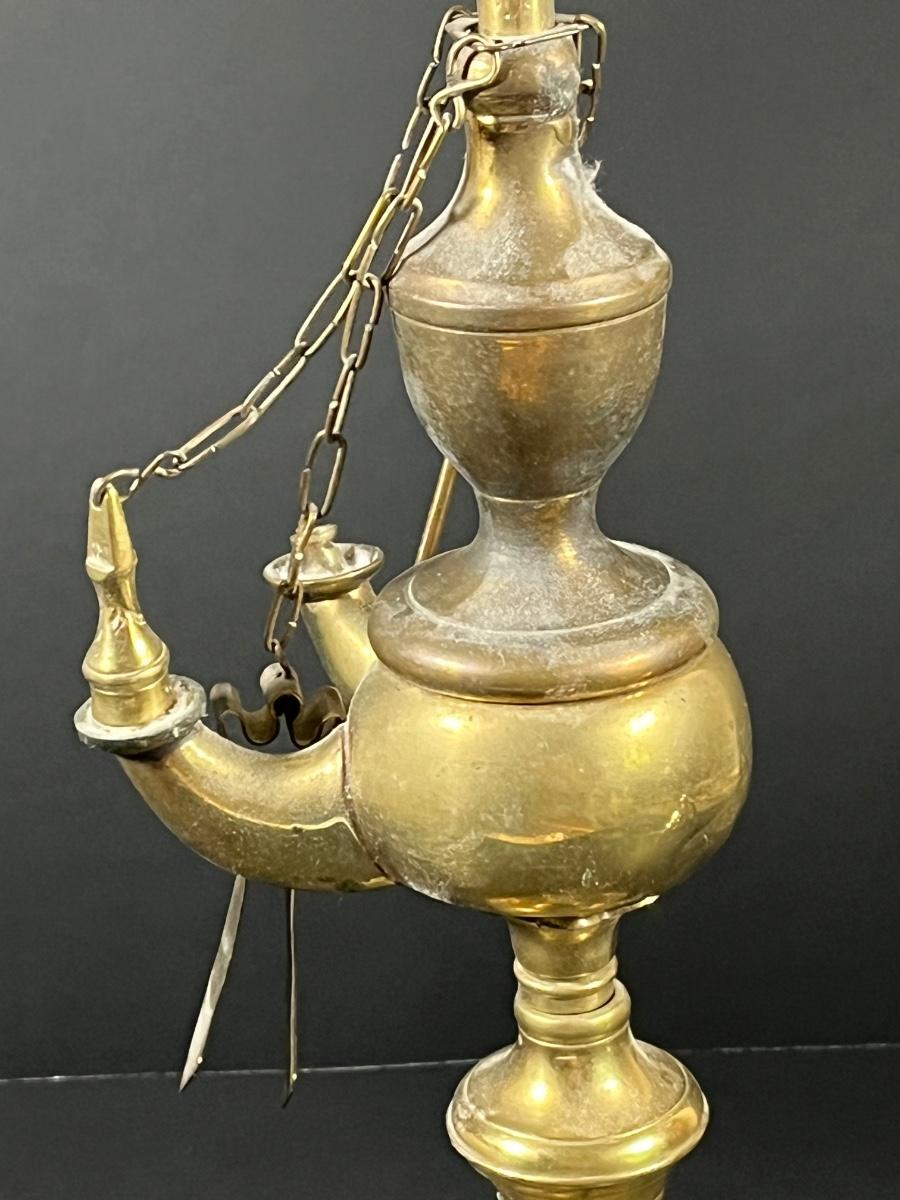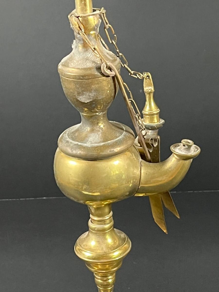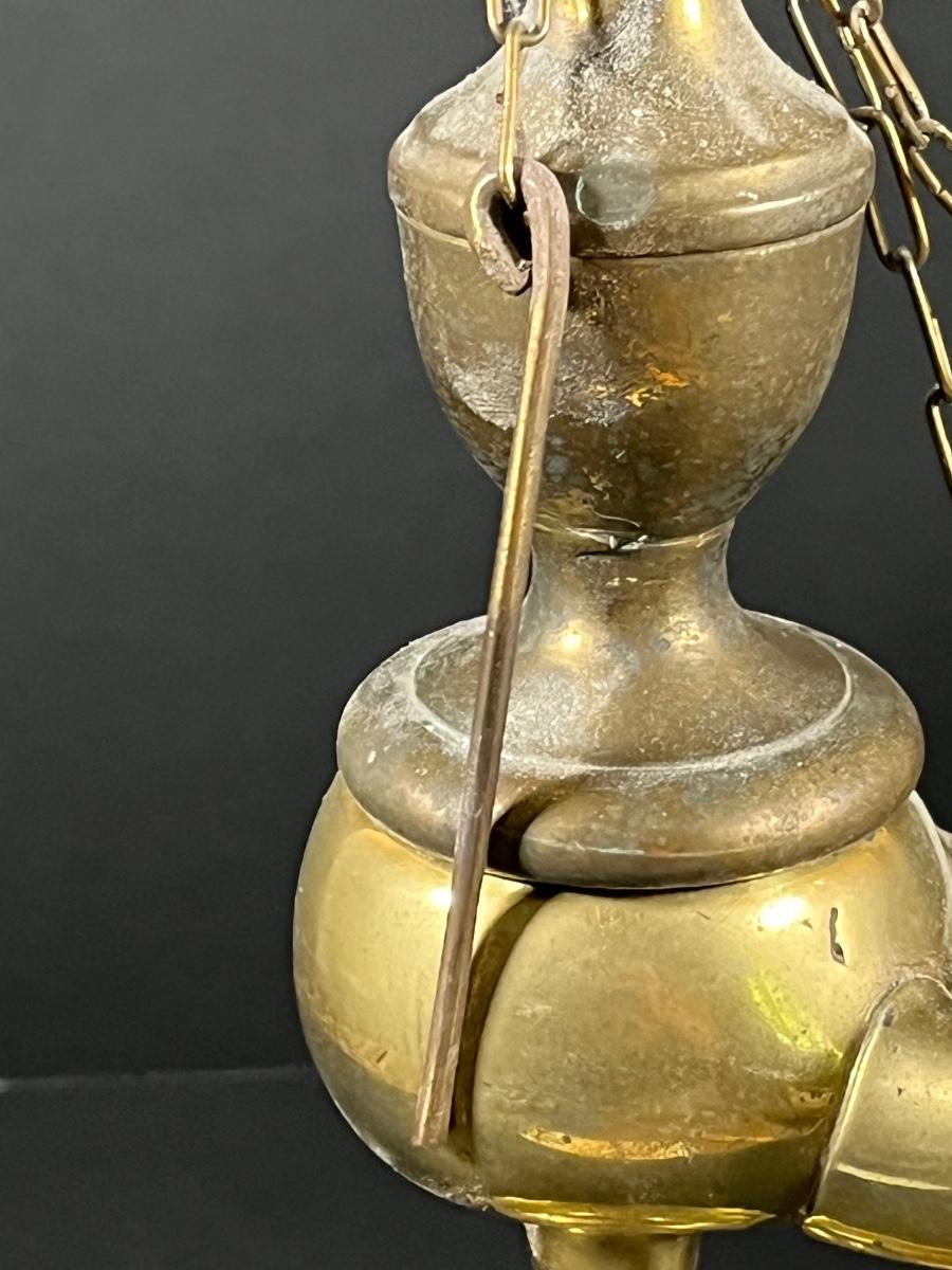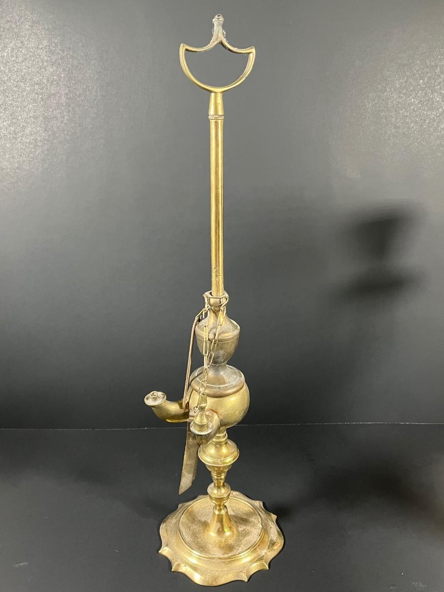 LOT 544D: Antique Two-Burner Brass Oil Lamp (Lucerne) w/ Attached Tools