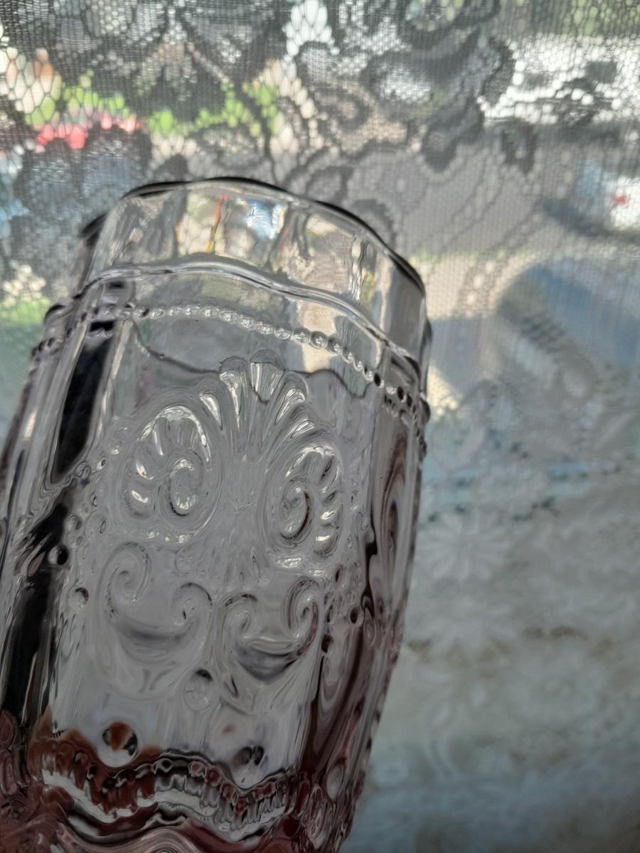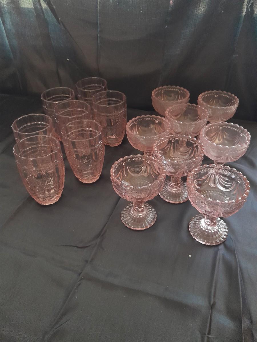 LOT 545  PINK TIARA? DRINKING GLASSES AND DESSERT CUPS