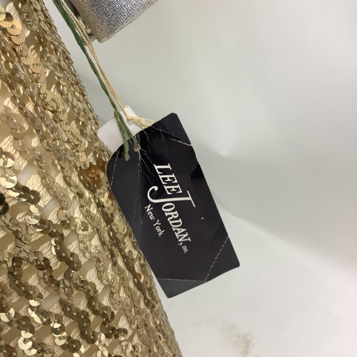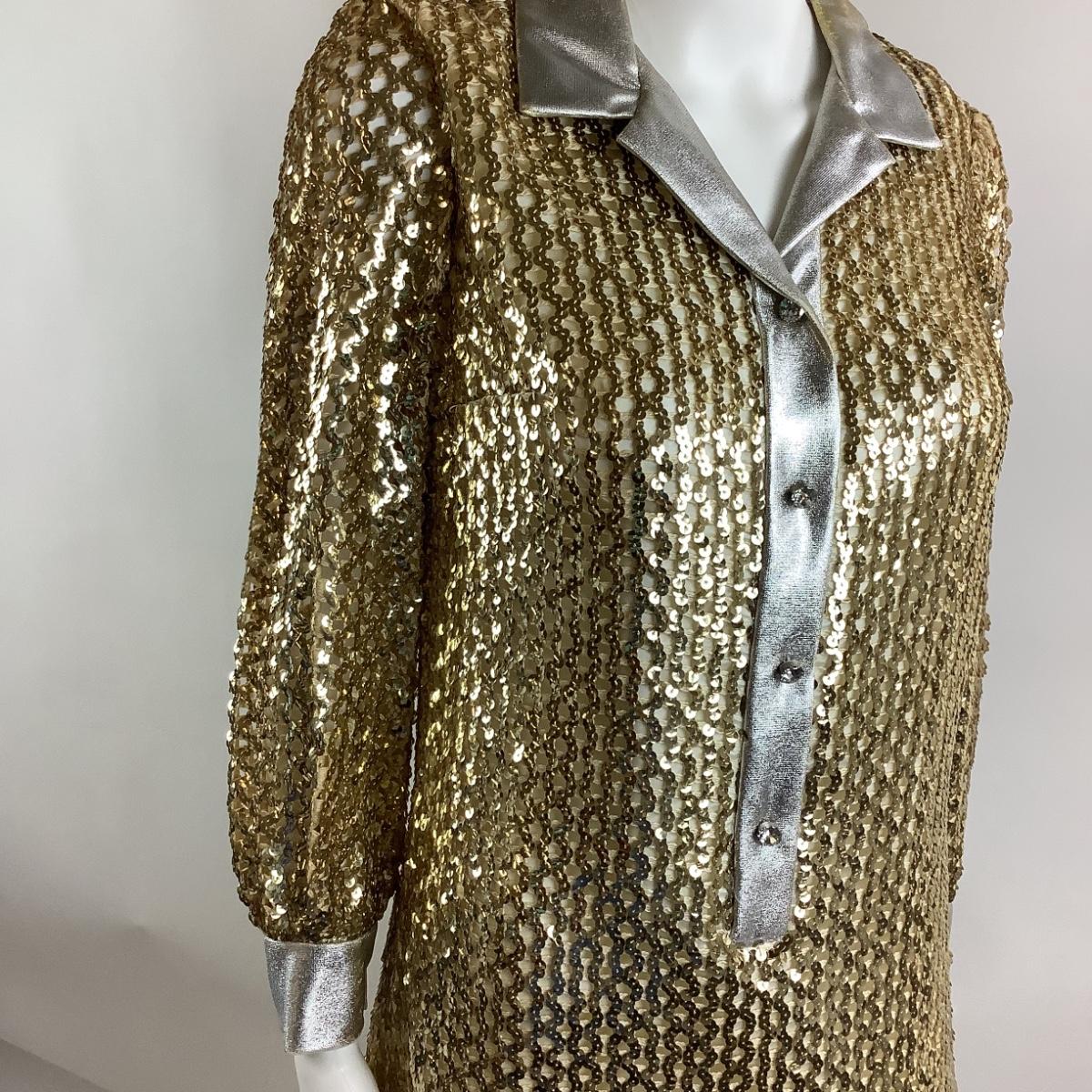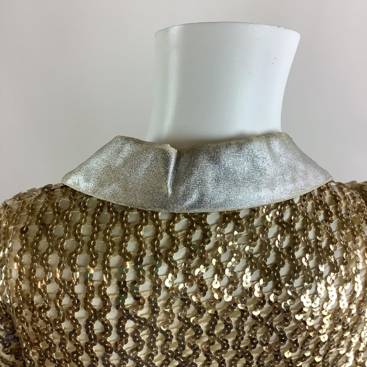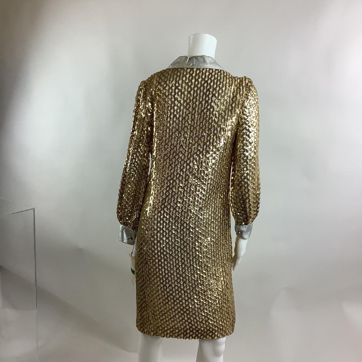 Lot 545 Vintage 1950's Lee Jordon Gold Sequins Dress with Metallic Collar, Faux Gem Buttons