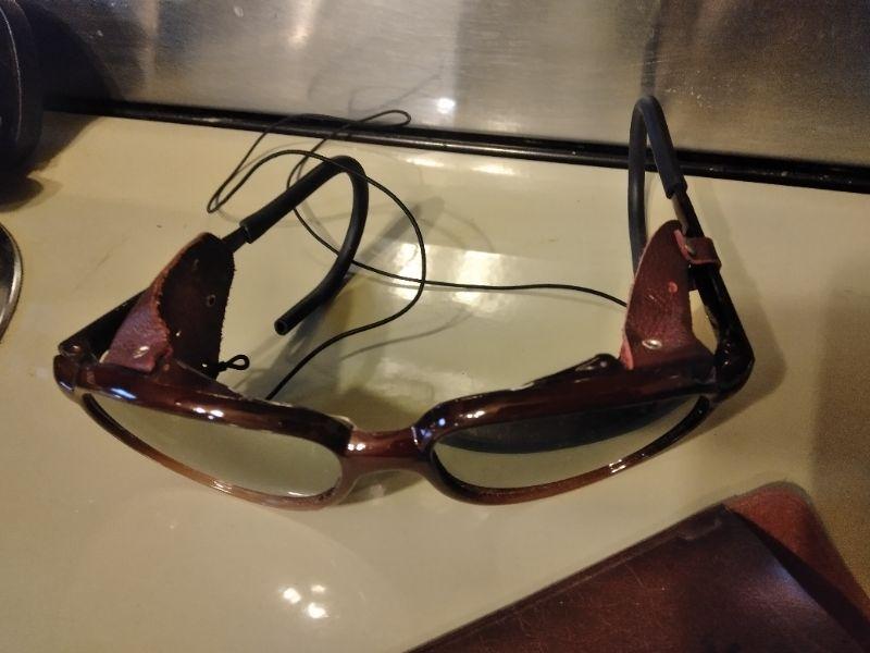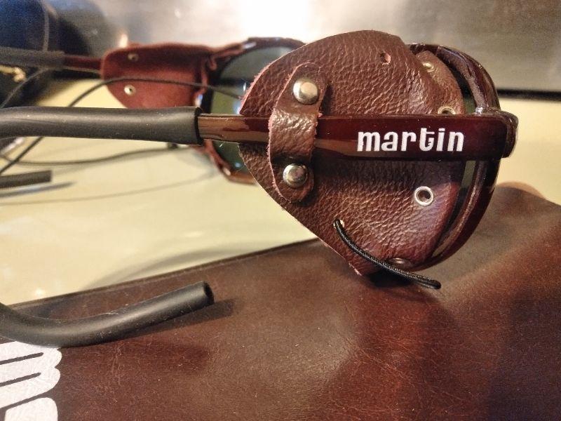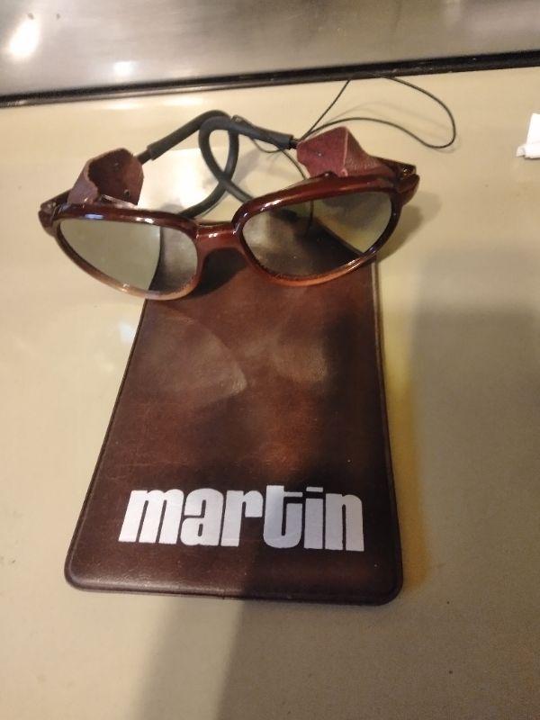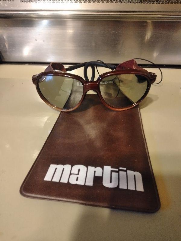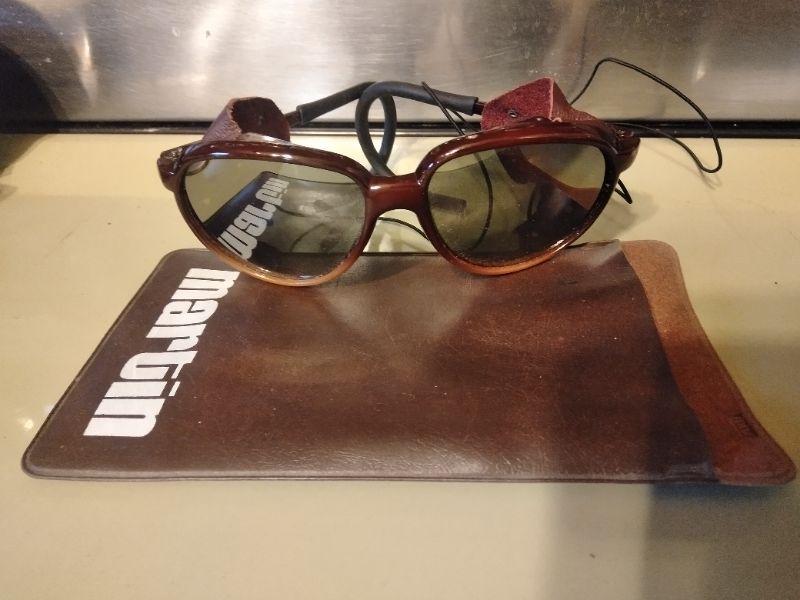 VINTAGE MARTIN BRAND SUNGLASSES WITH LEATHER SIDE SHIELDS, AND MARTIN CASE.