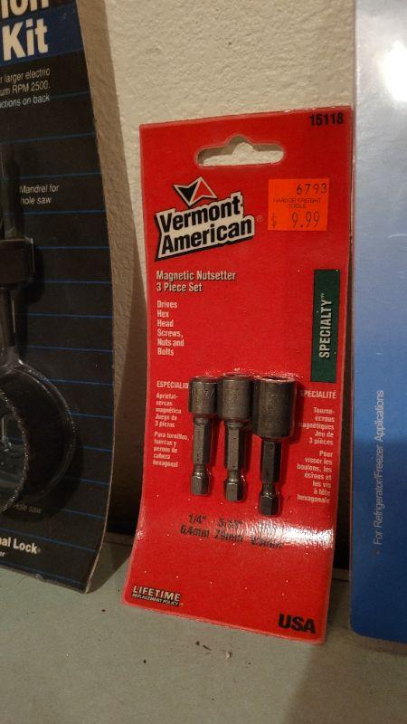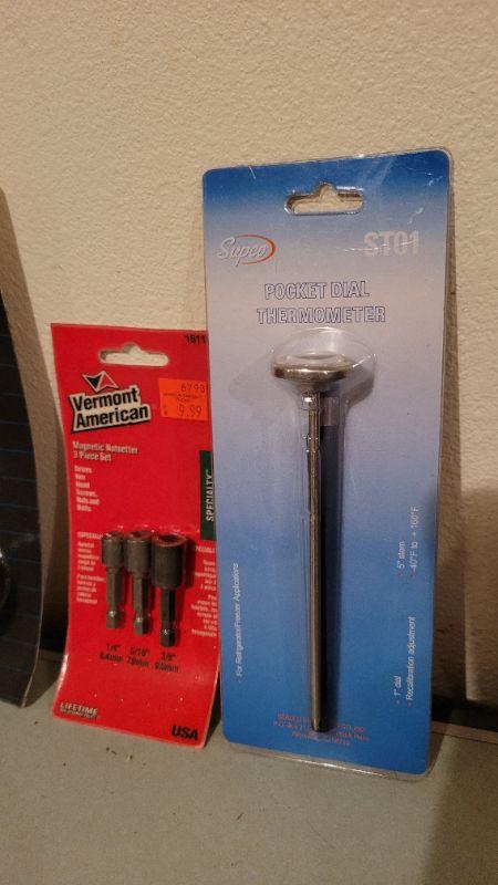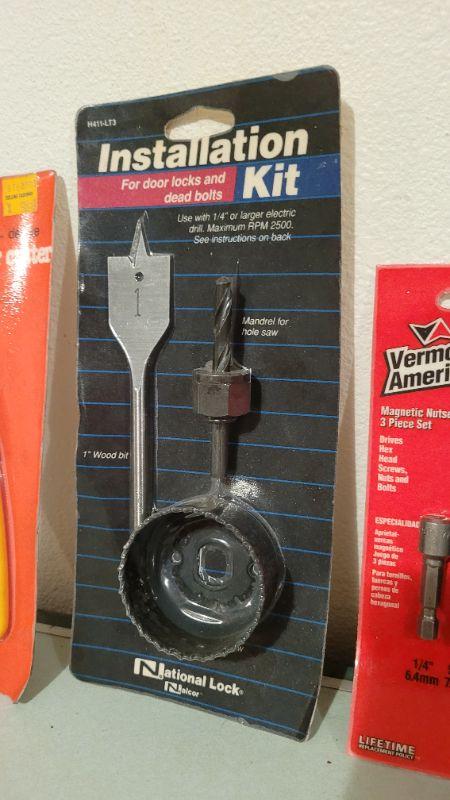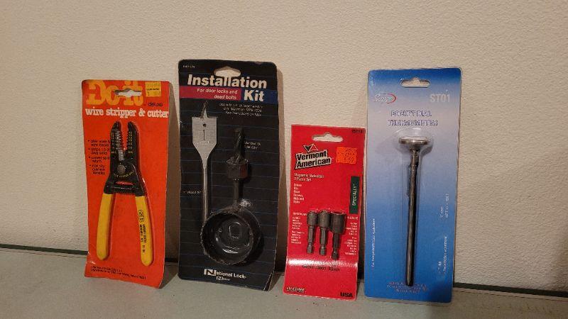 Lot 546: Assorted NEW Tools - (Wire Cutter, Magnetic Nutsetters, Door Lock Saw Kit, Themometer)