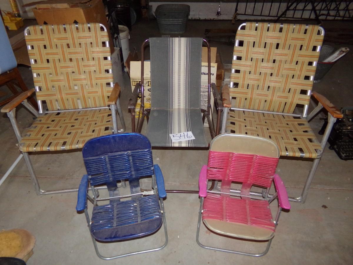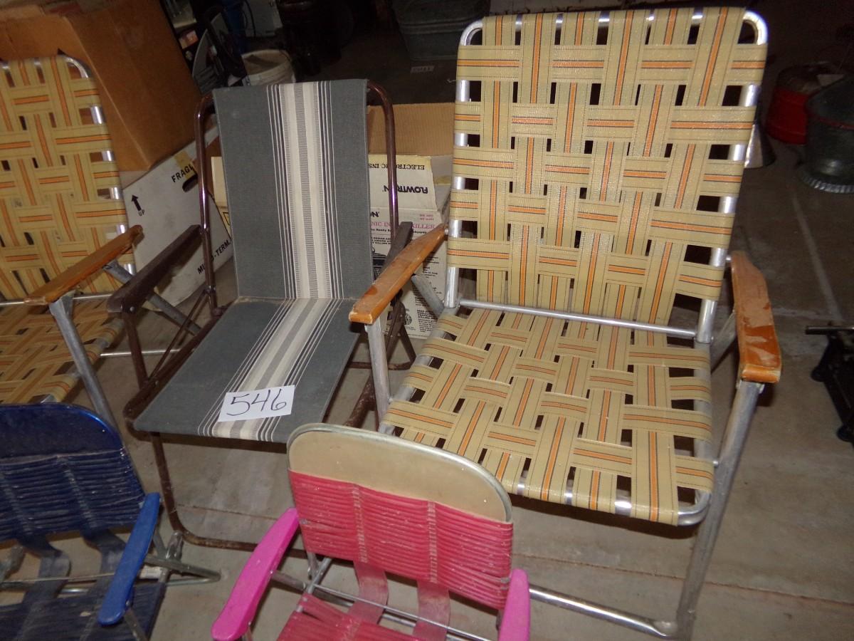3 LARGE LAWN CHAIRS AND 2 CHILDREN'S LAWN CHAIRS.