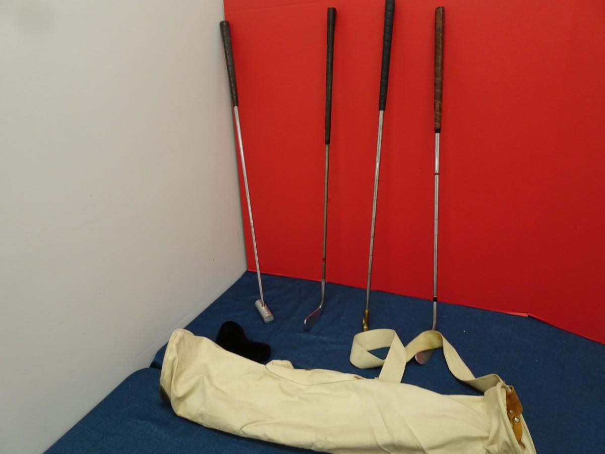 LOT 546. VINTAGE GOLF CLUBS AND BAG