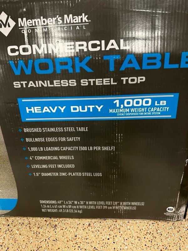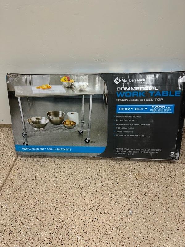 Commercial worktable with stainless steel top 4 inch commercial wheels, heavy duty, 1000 pound capacity still in box