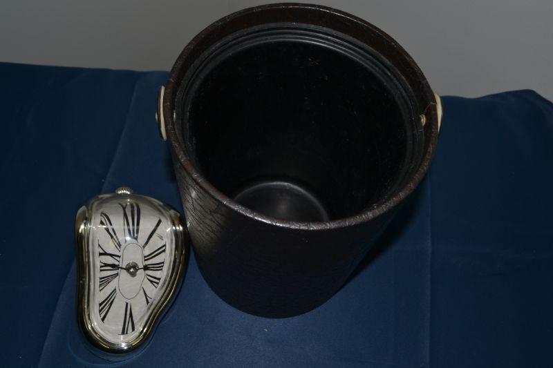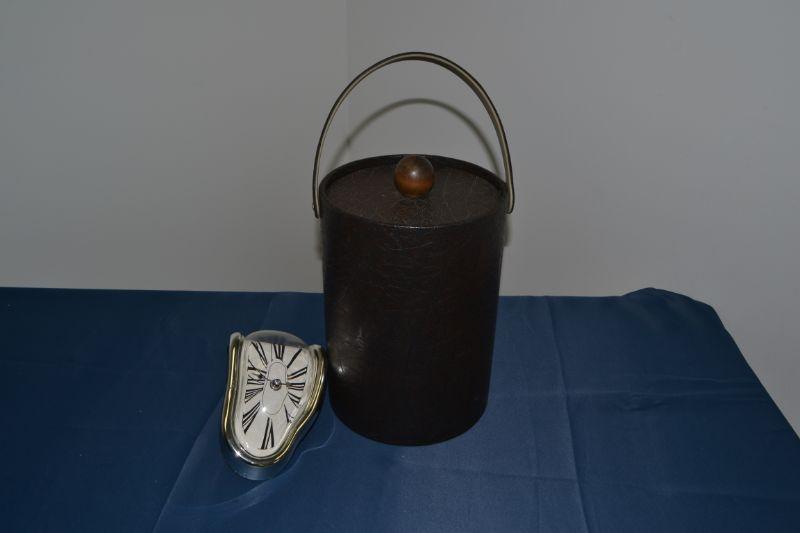 VINTAGE VINYL ICE BUCKET AND CLOCK