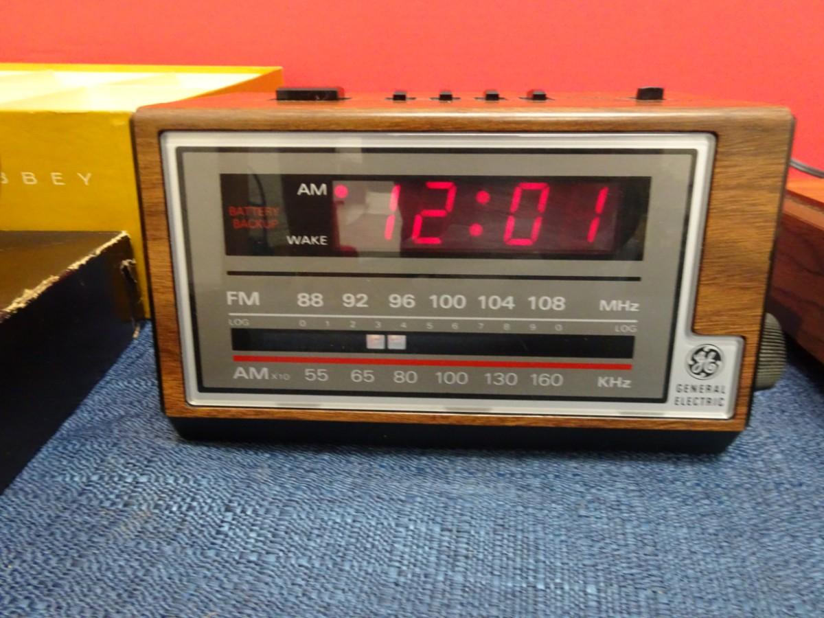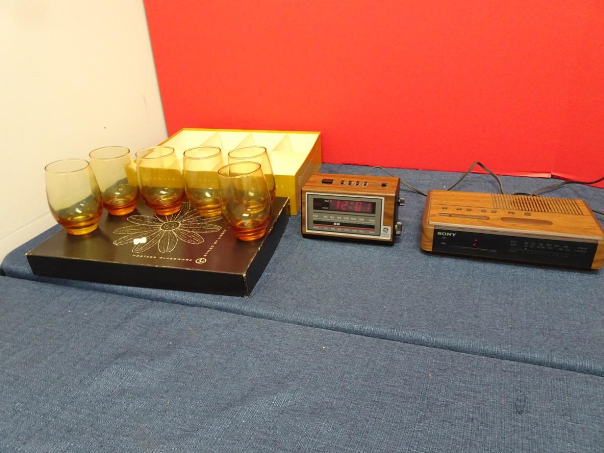 LOT 547. VINTAGE GLASSWARE AND TWO VINTAGE ALARM CLOCKS