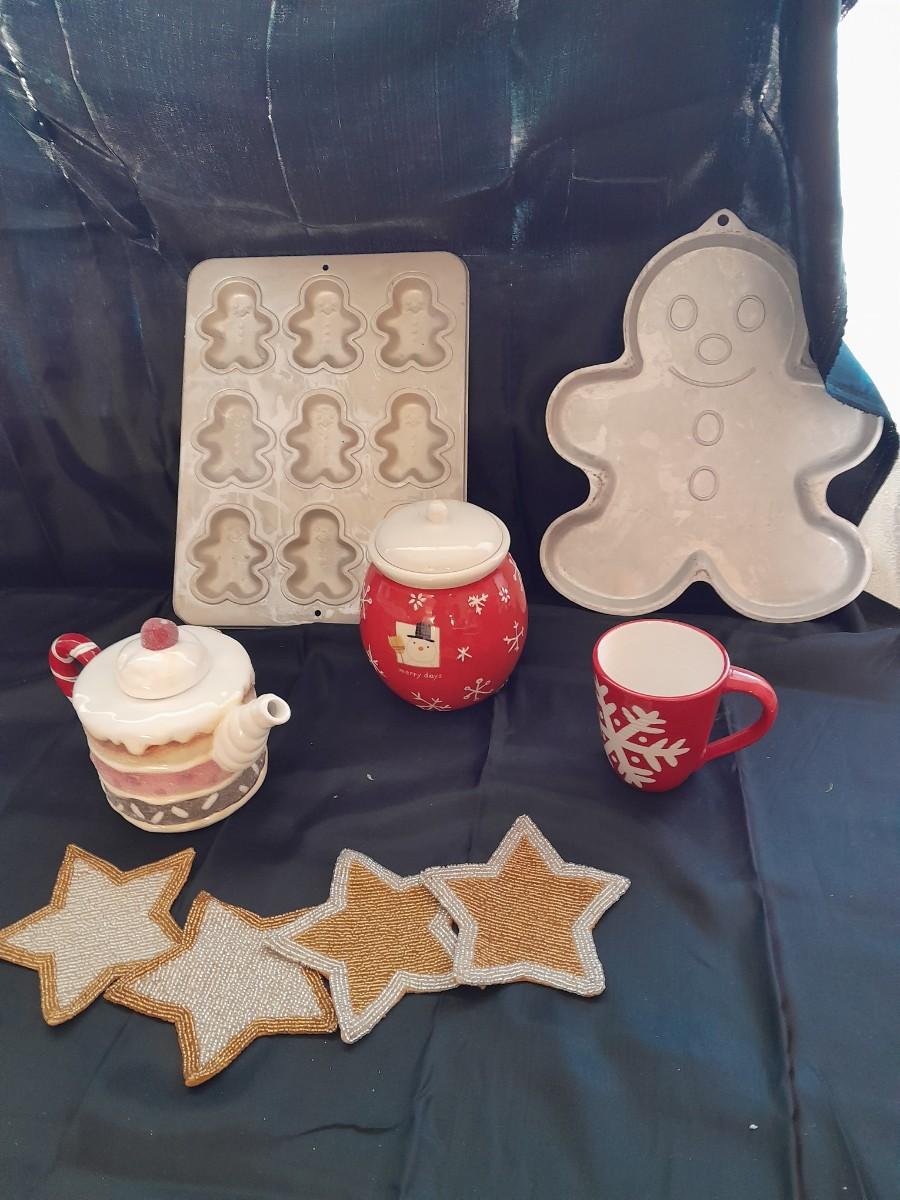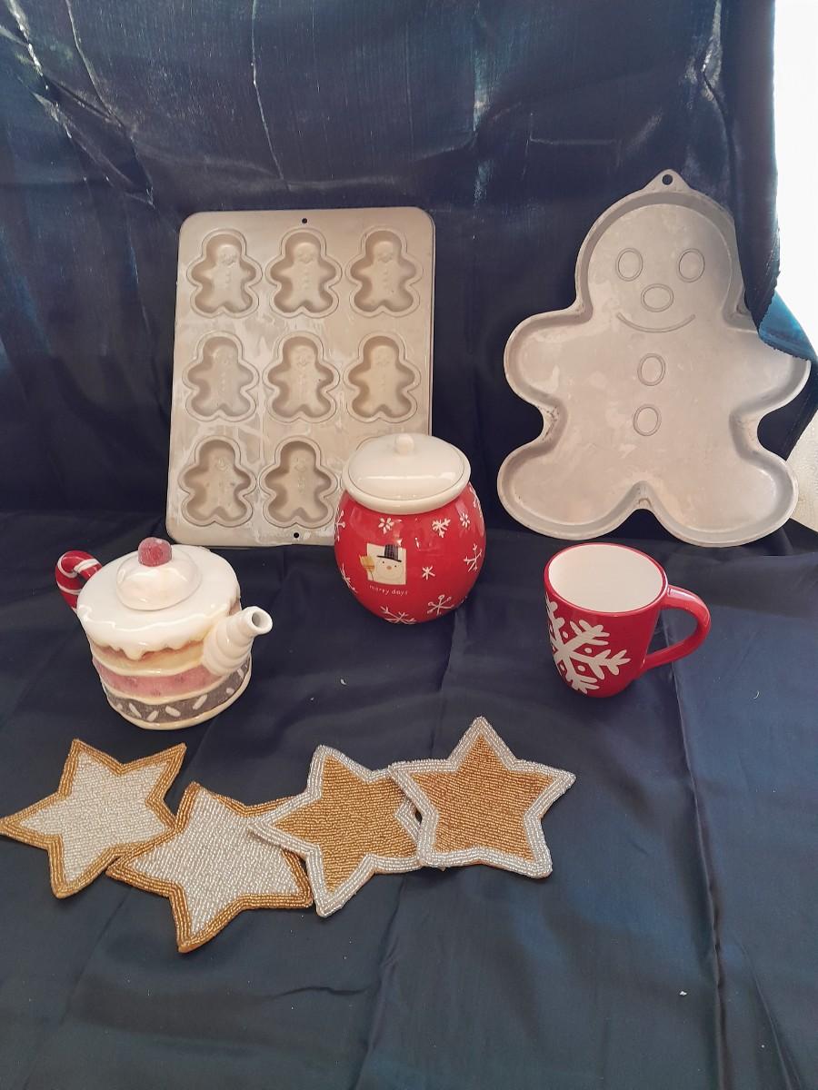 CHRISTMAS KITCHEN ITEMS WILTON PAN, TEA POT AND MORE