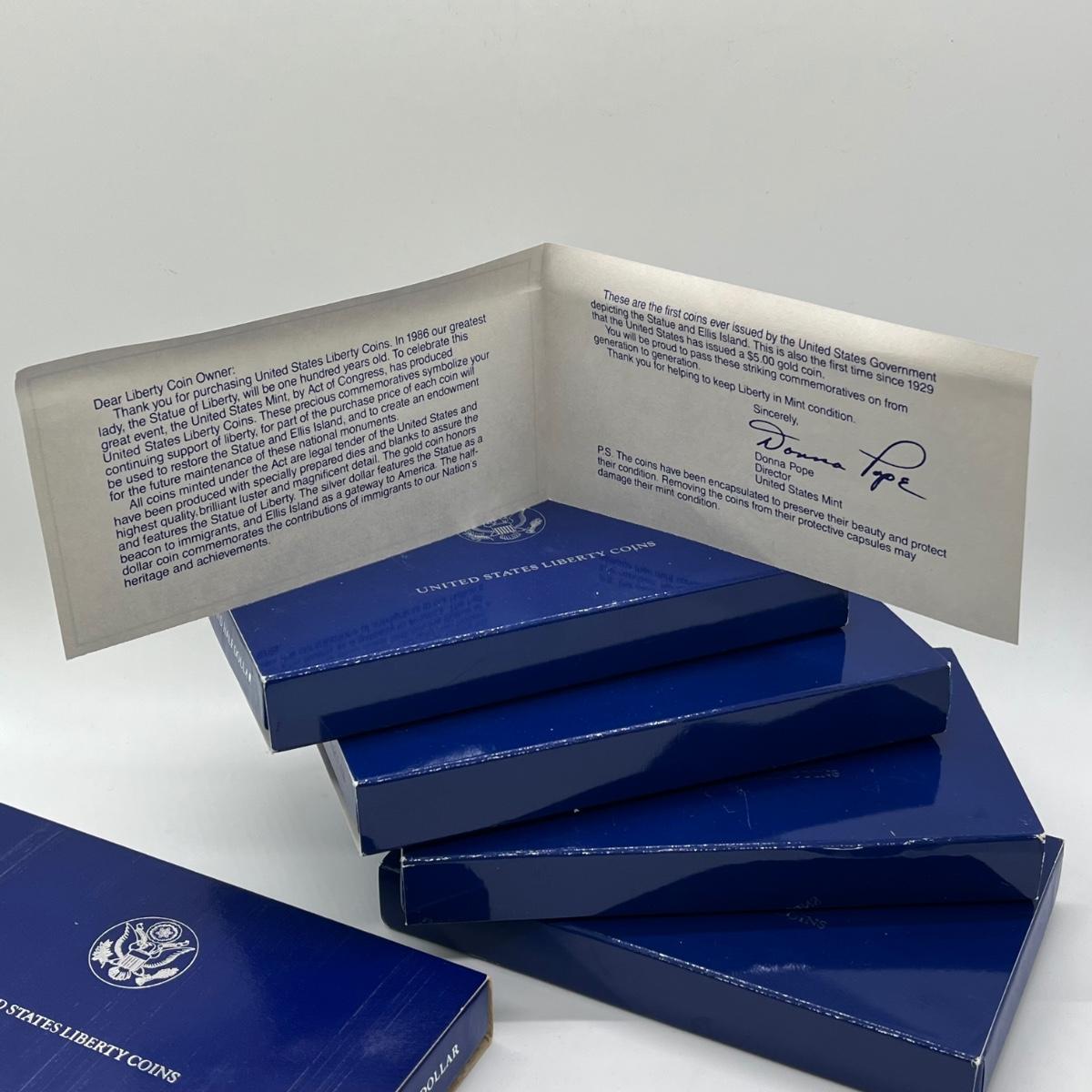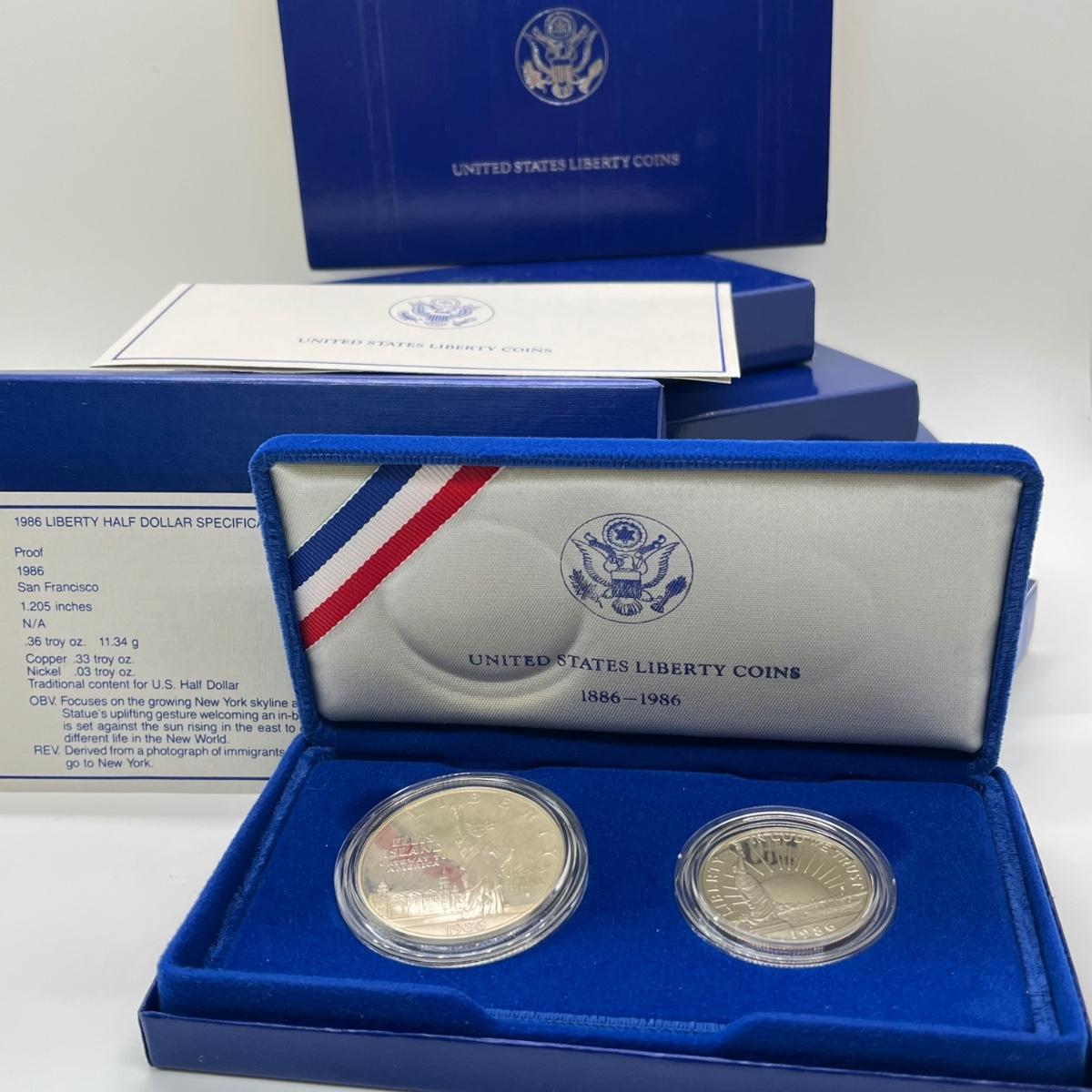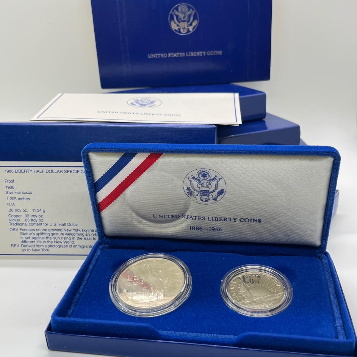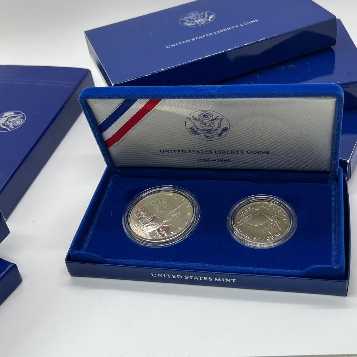 LOT 547F: Five Proof Sets of United States Liberty Coins - 1886-1986 Statue of Liberty Commemorative Silver Dollars and Half Dollars