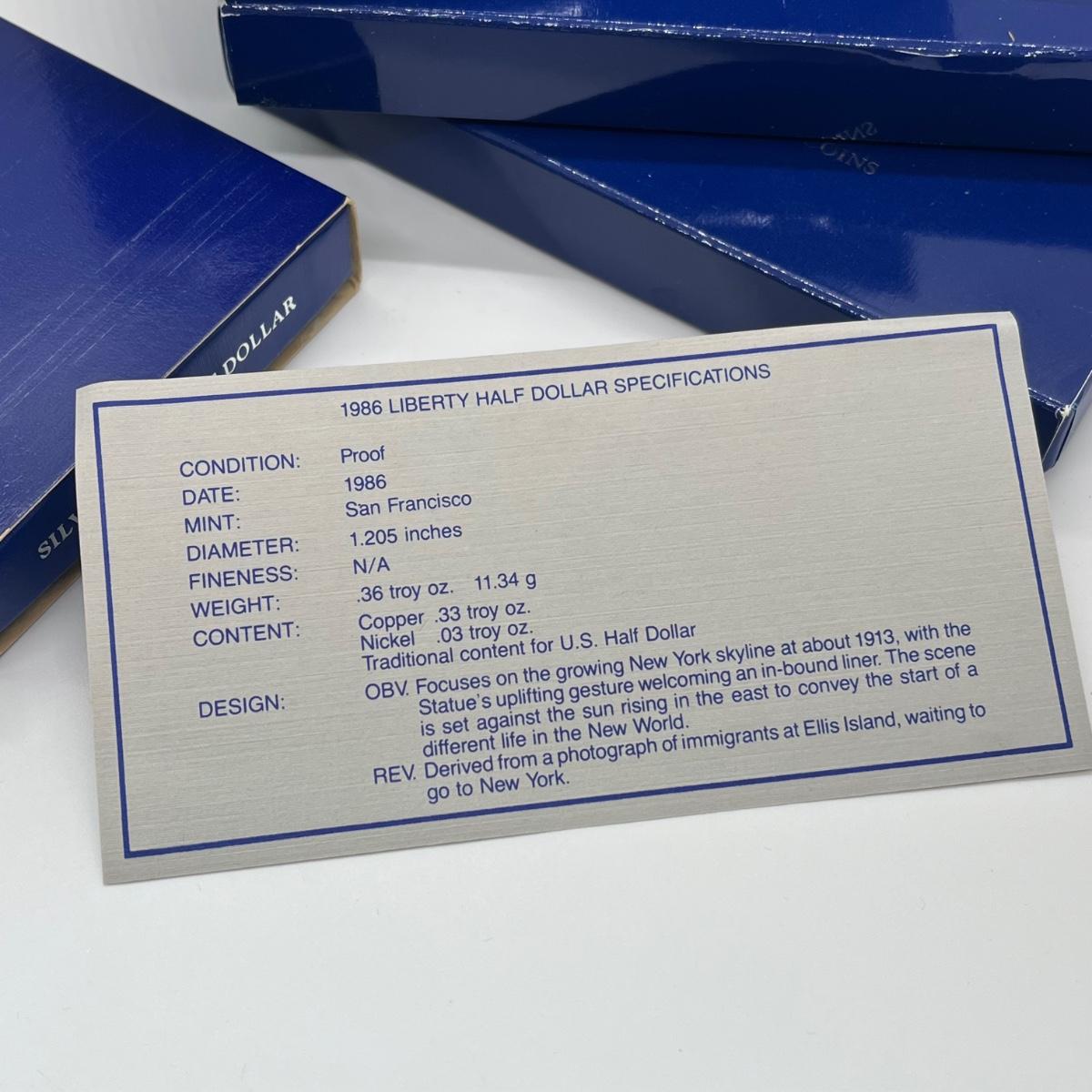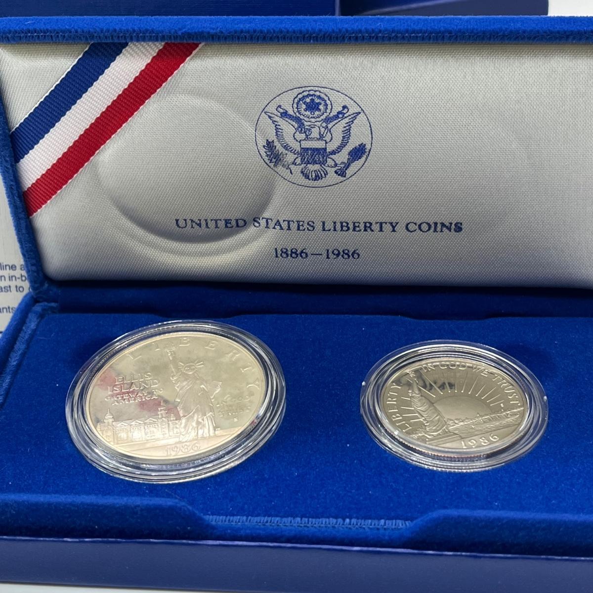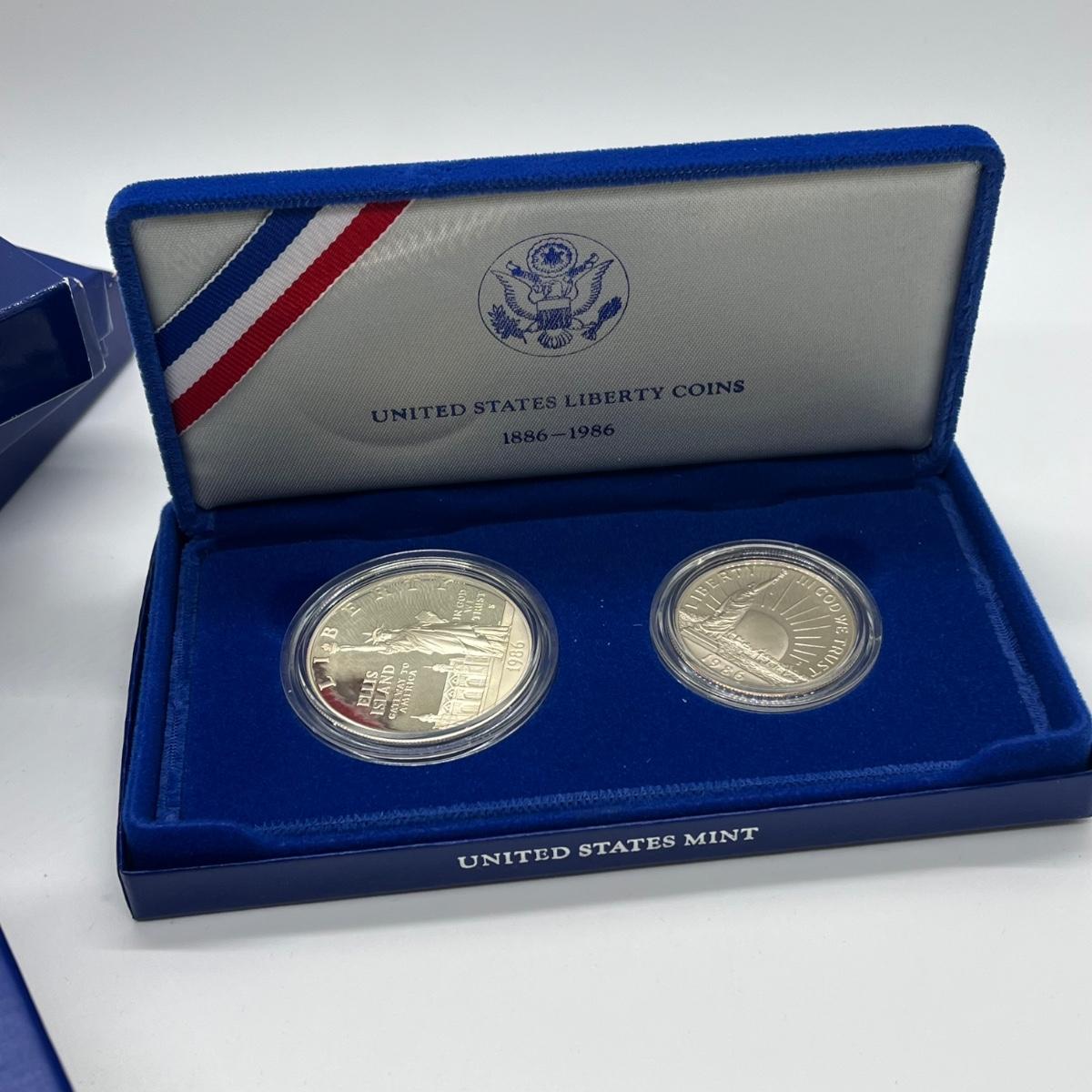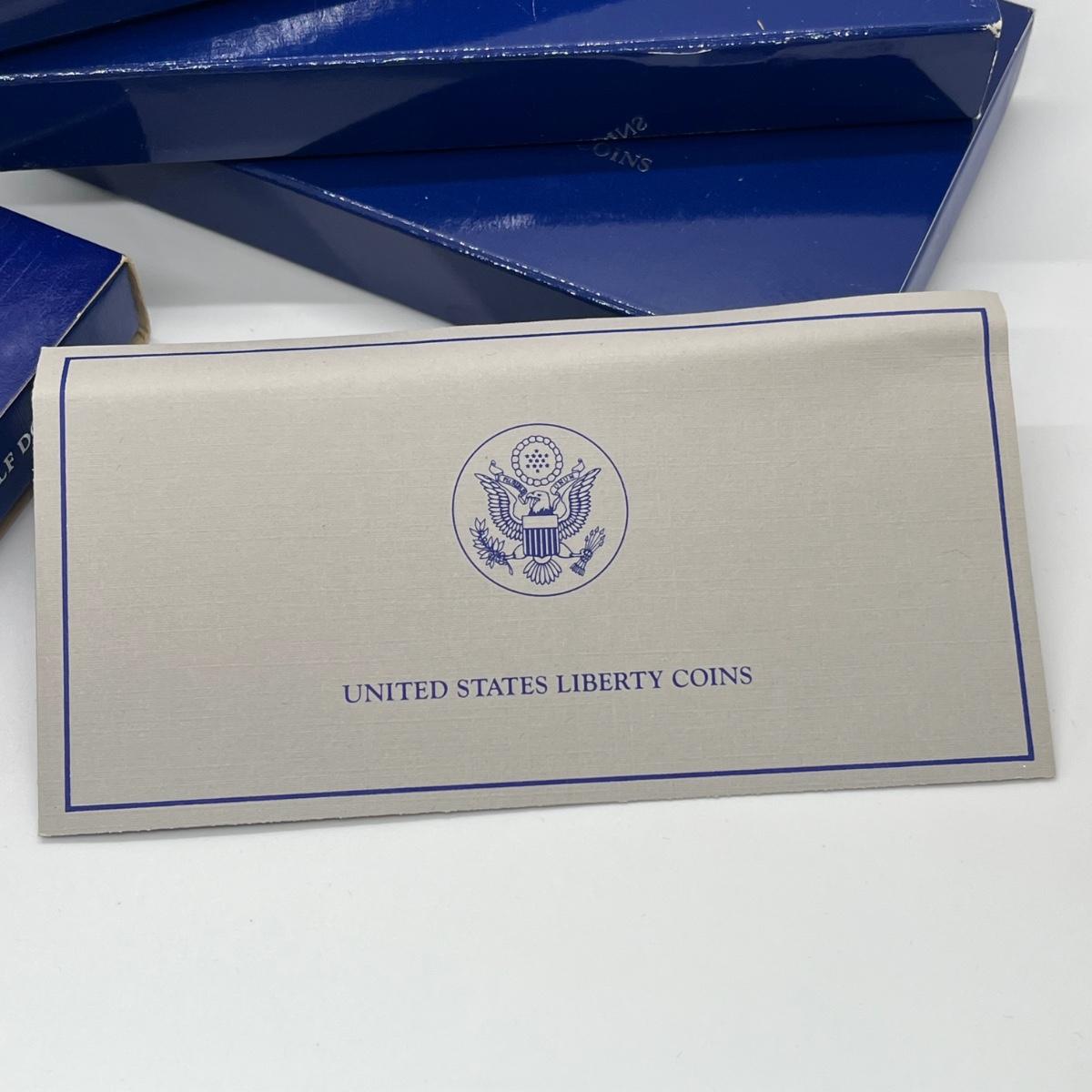 LOT 547F: Five Proof Sets of United States Liberty Coins - 1886-1986 Statue of Liberty Commemorative Silver Dollars and Half Dollars