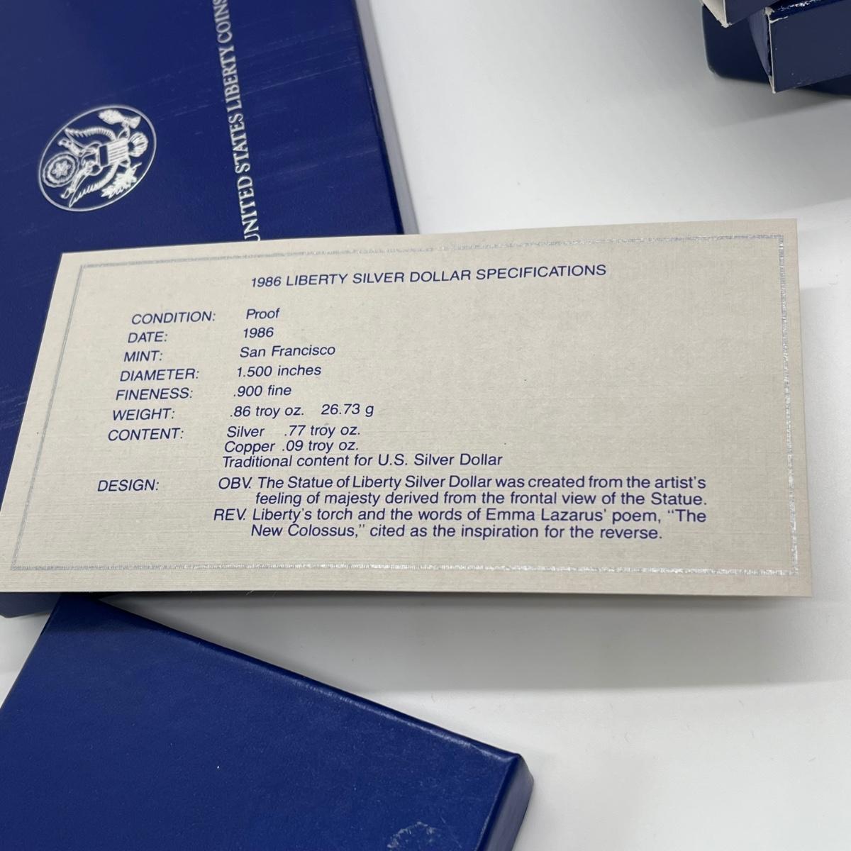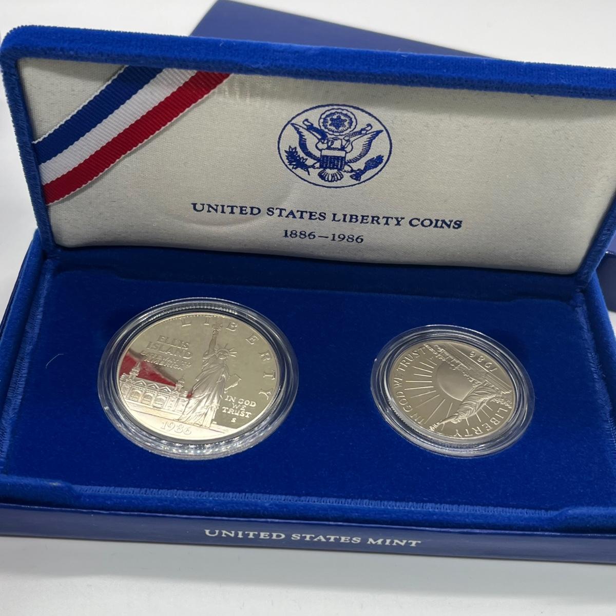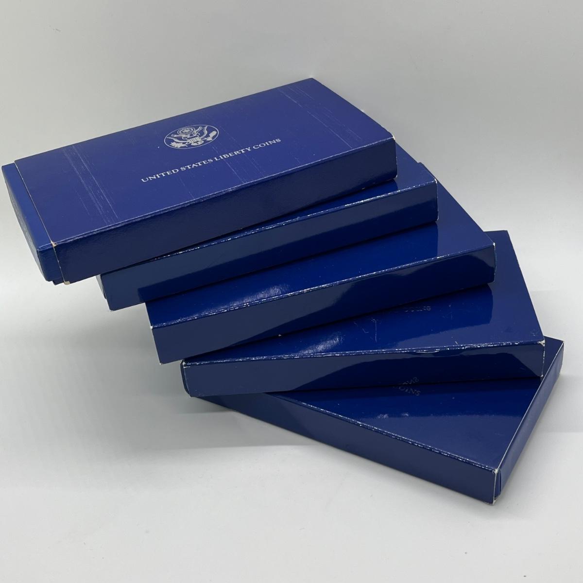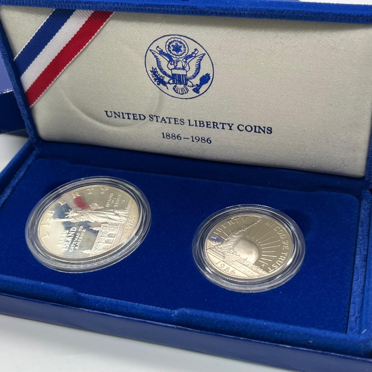 LOT 547F: Five Proof Sets of United States Liberty Coins - 1886-1986 Statue of Liberty Commemorative Silver Dollars and Half Dollars