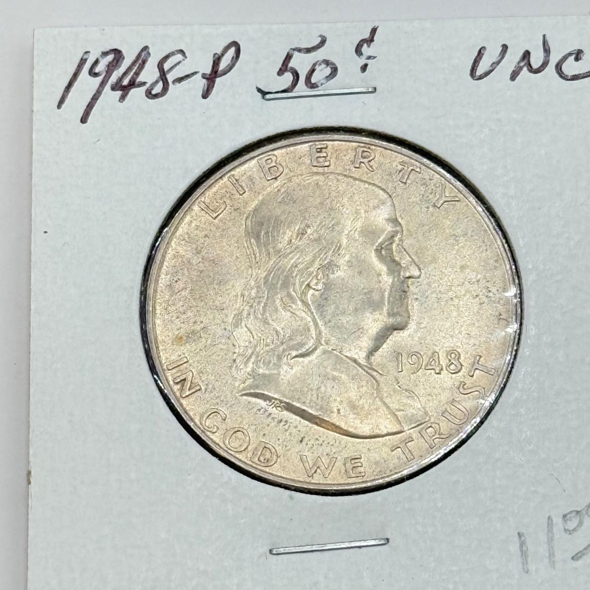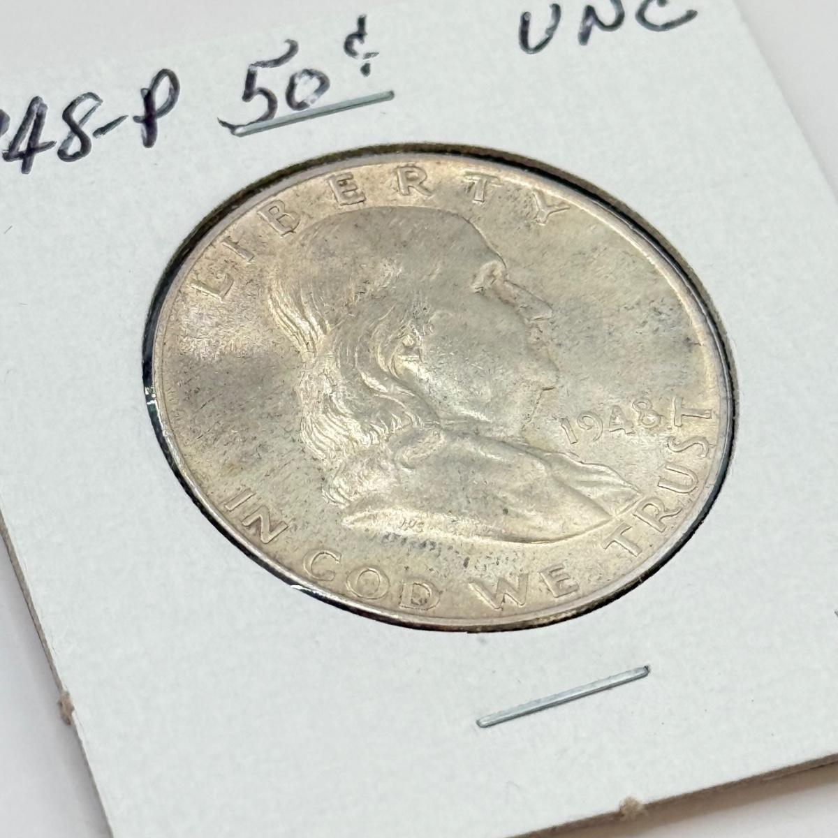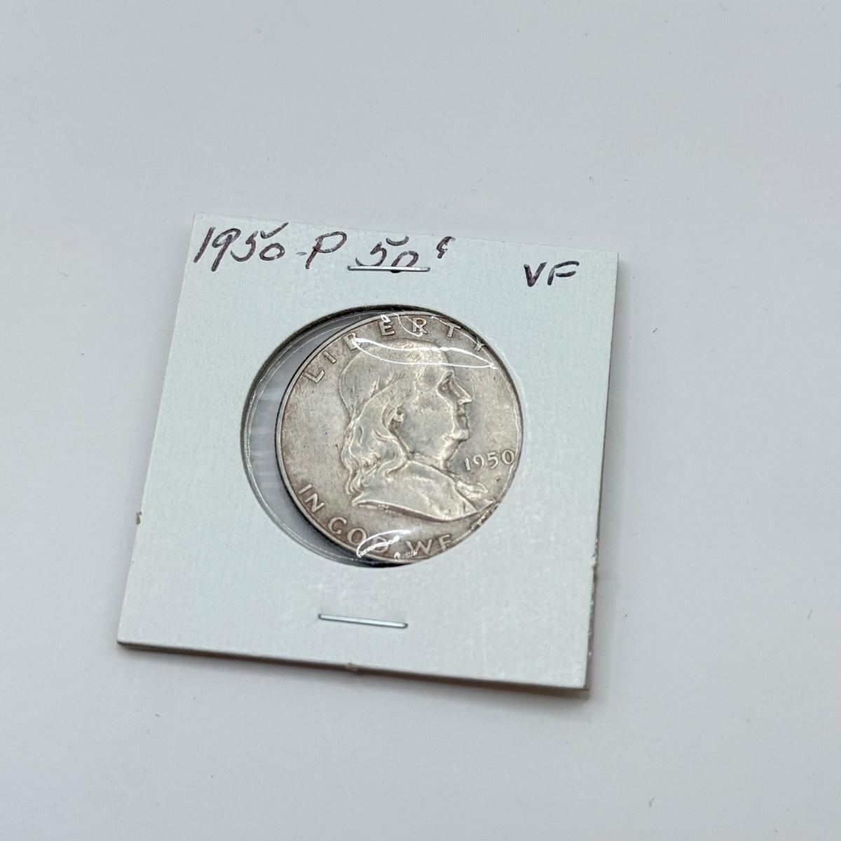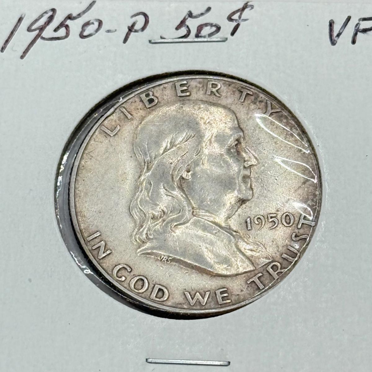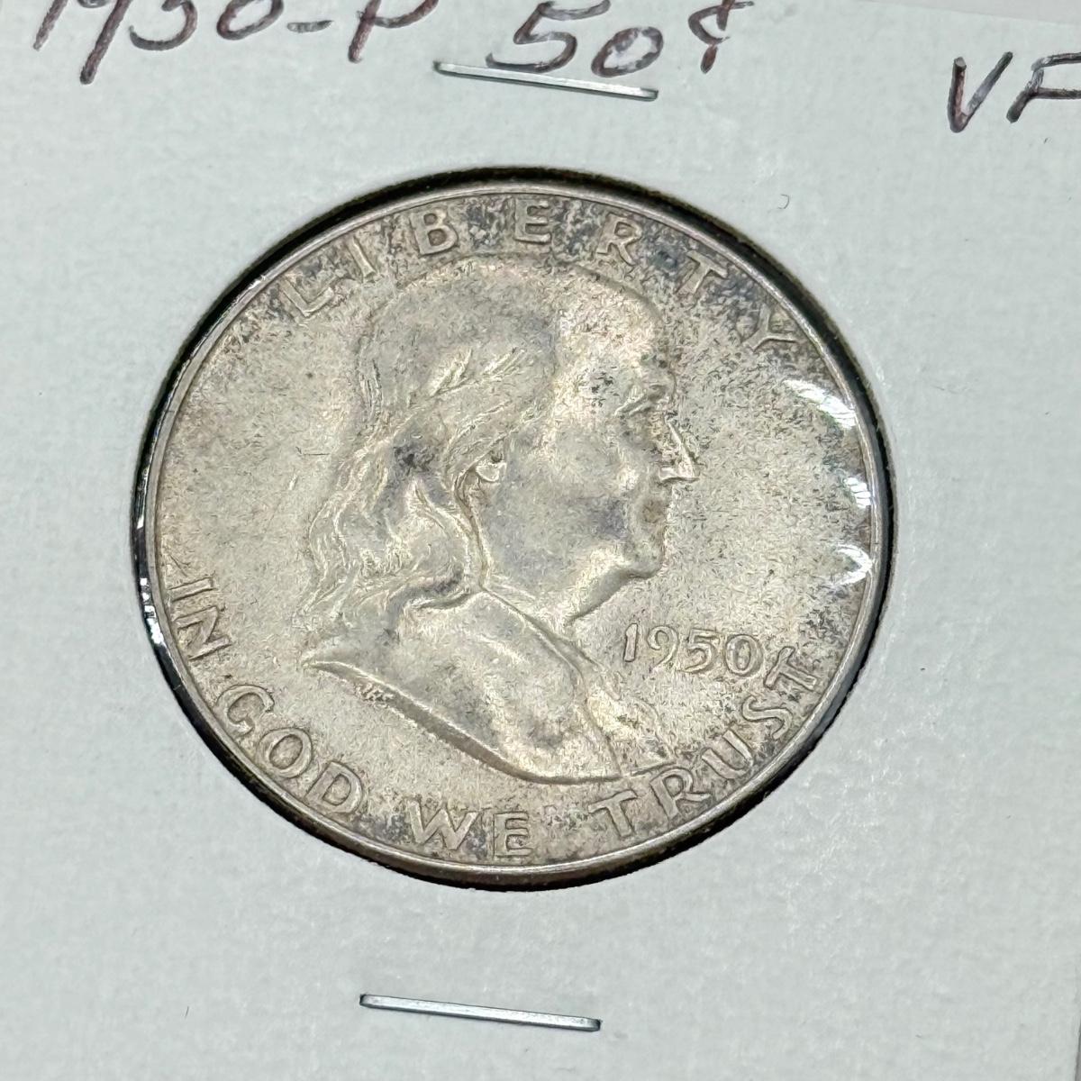 LOT 547J: 1948-P & 1950-P Benjamin Franklin Liberty Bell US Half Dollar Coins (90% Silver)