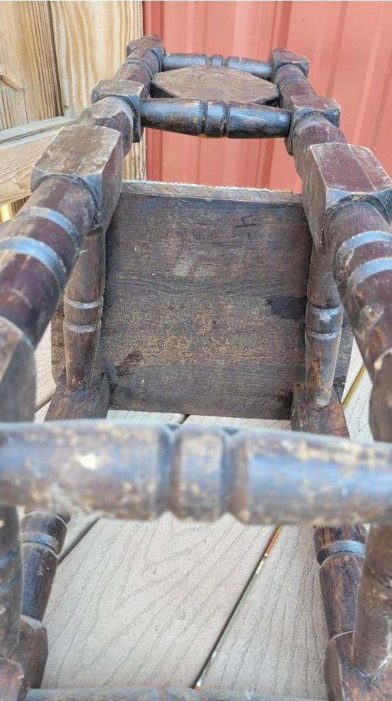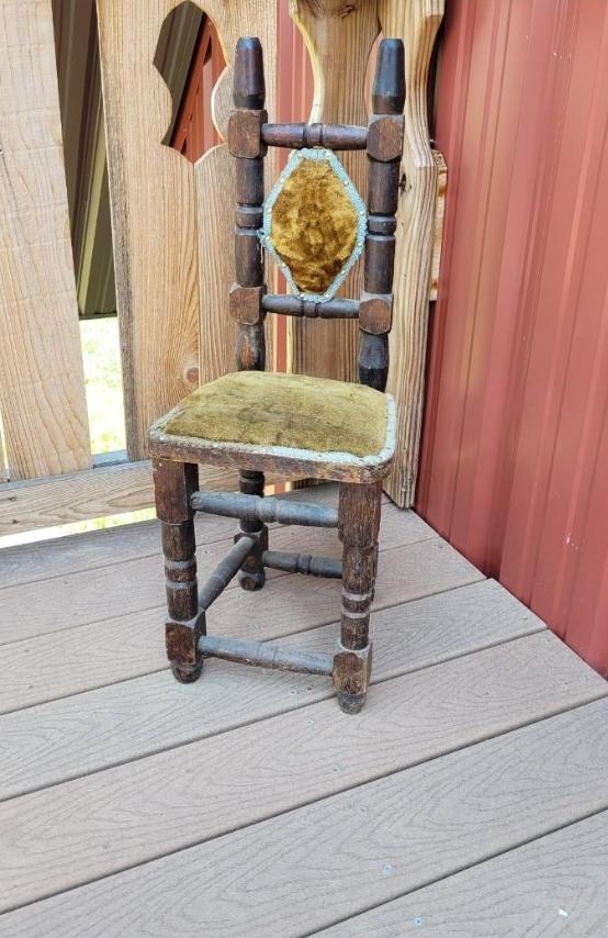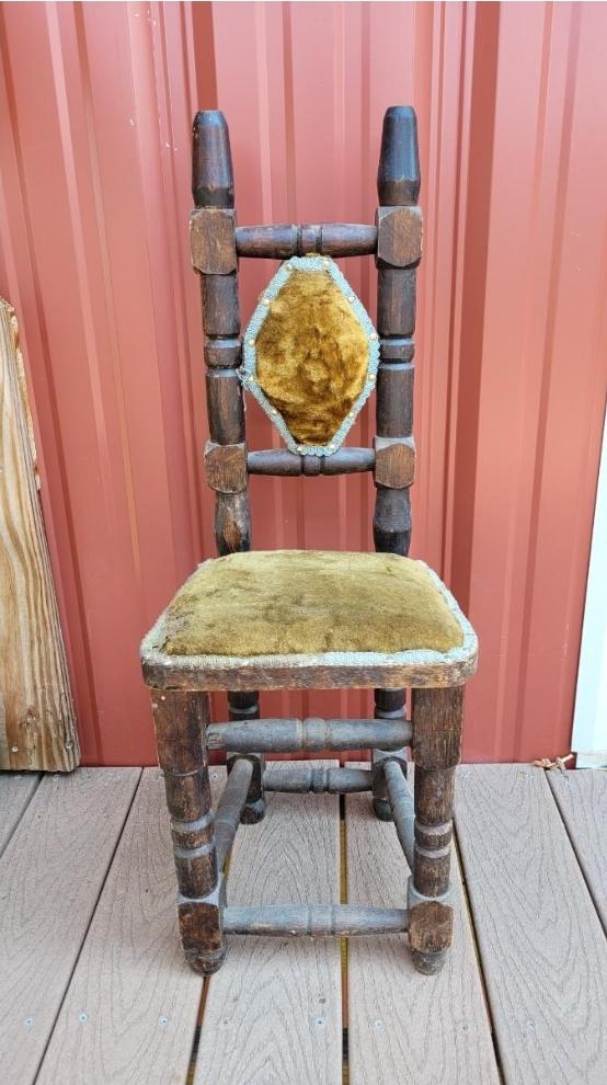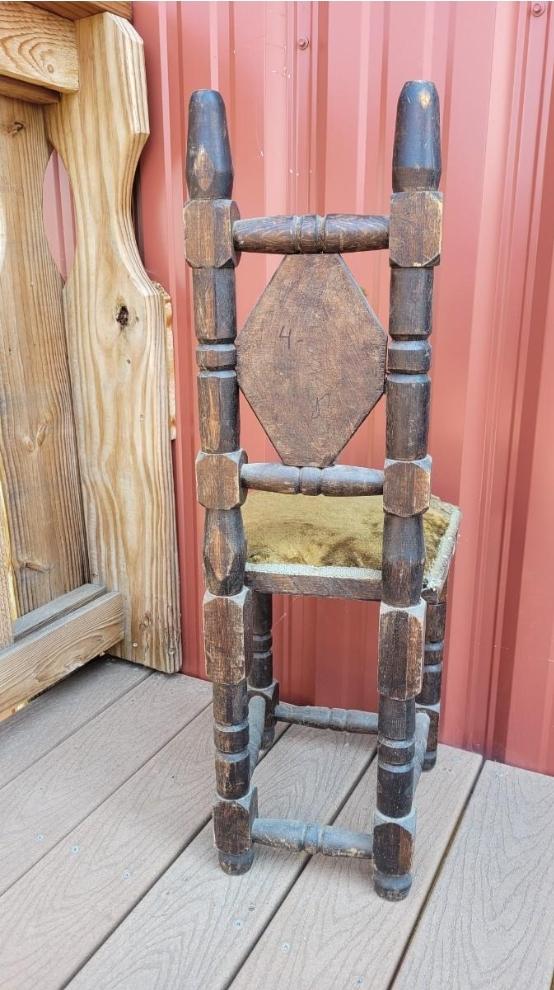 Lot 548: 1920's Jacobean Style Child's Prayer Chair with Green Velvet