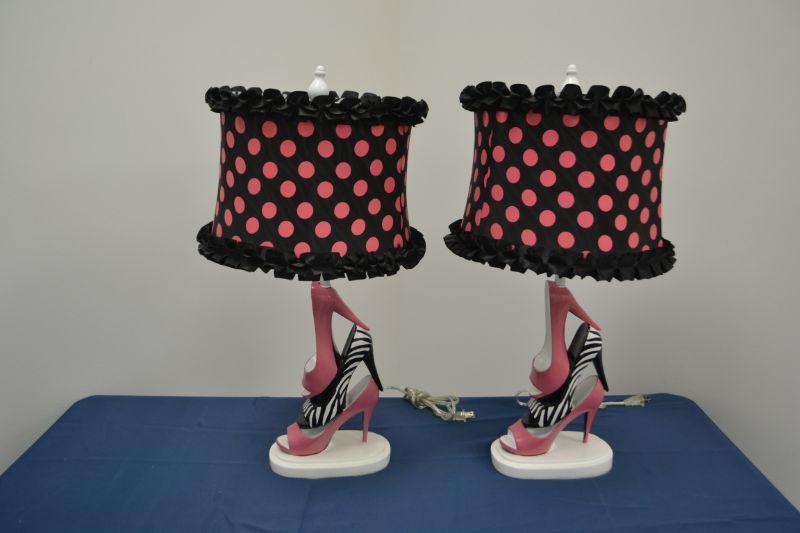 HIGH HEALS TABLE LAMPS WITH POKA DOT LAMP SHADES