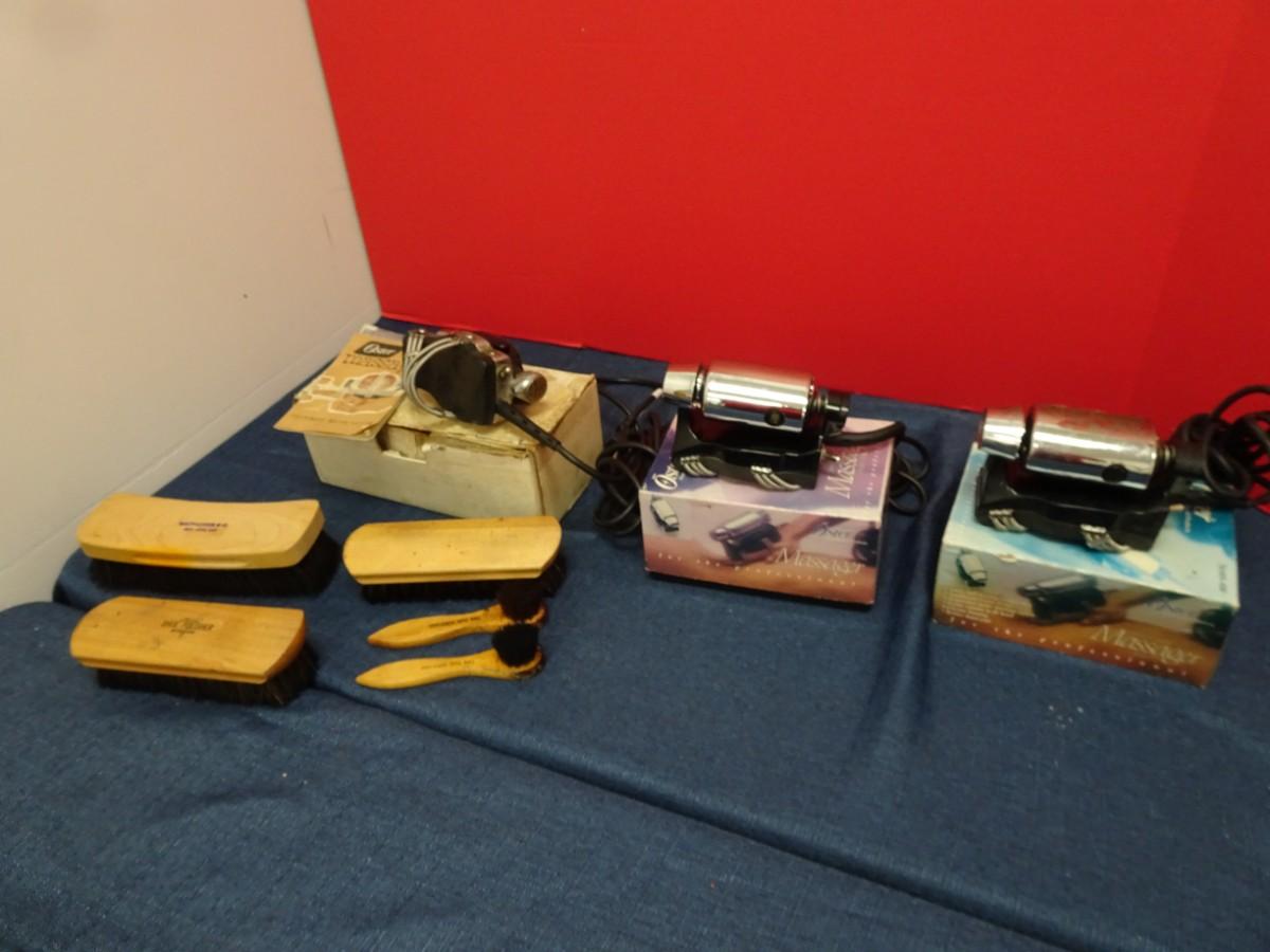 LOT 548. THREE VINTAGE MASSAGERS AND SHOW POLISH BRUSHES