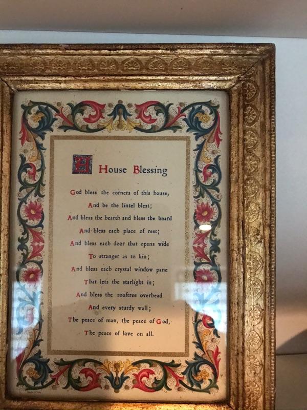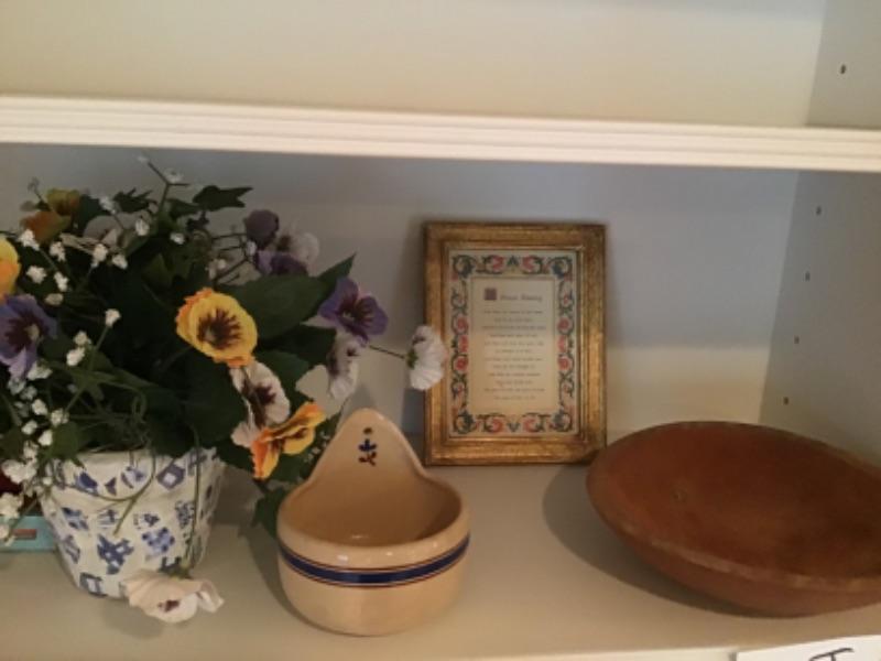 Gold Framed Home Blessing, wooden bowl, ceramic bowl, artificial plant