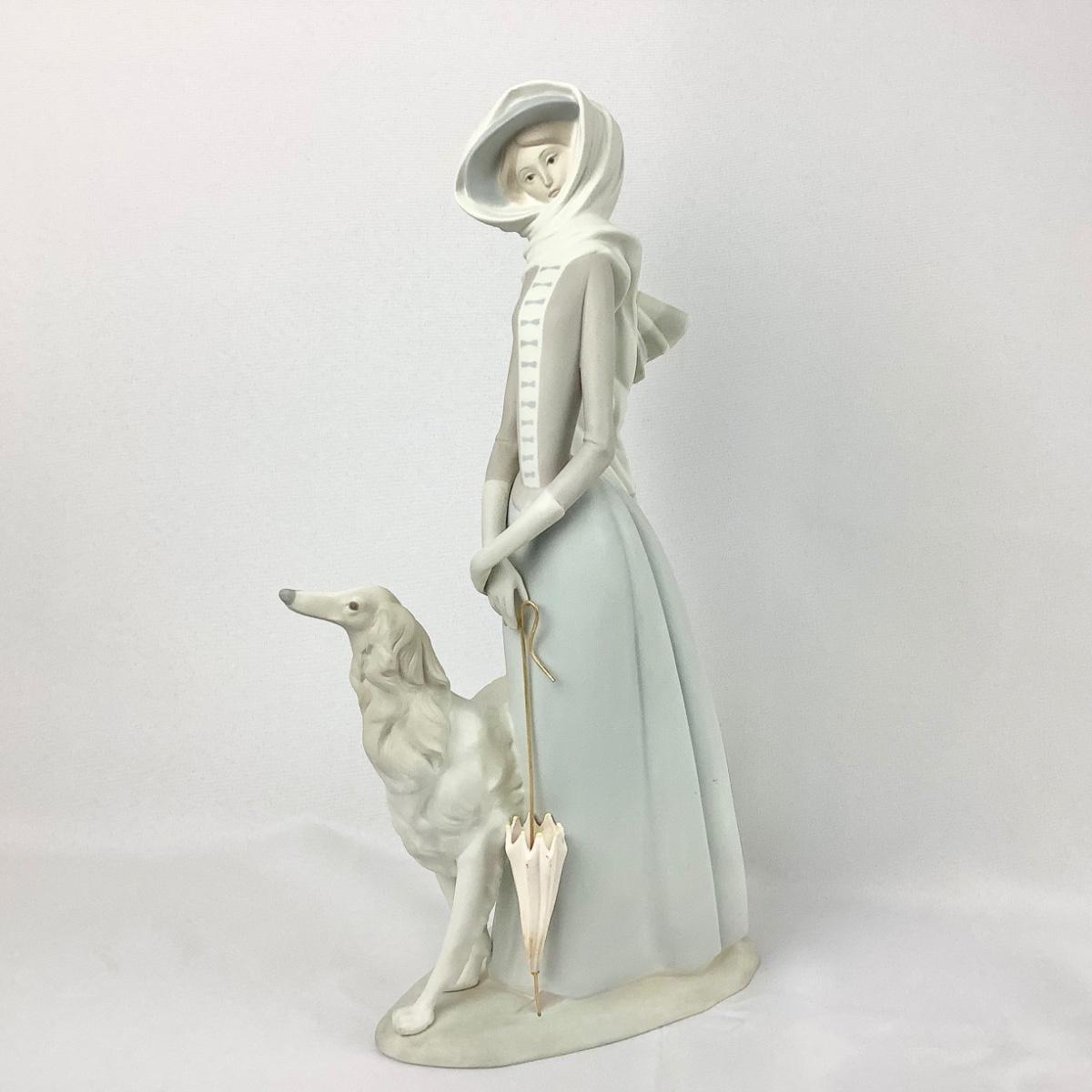 Lot 548 Signed LLADRO Porcelain Figure, Lady Walking a Greyhound