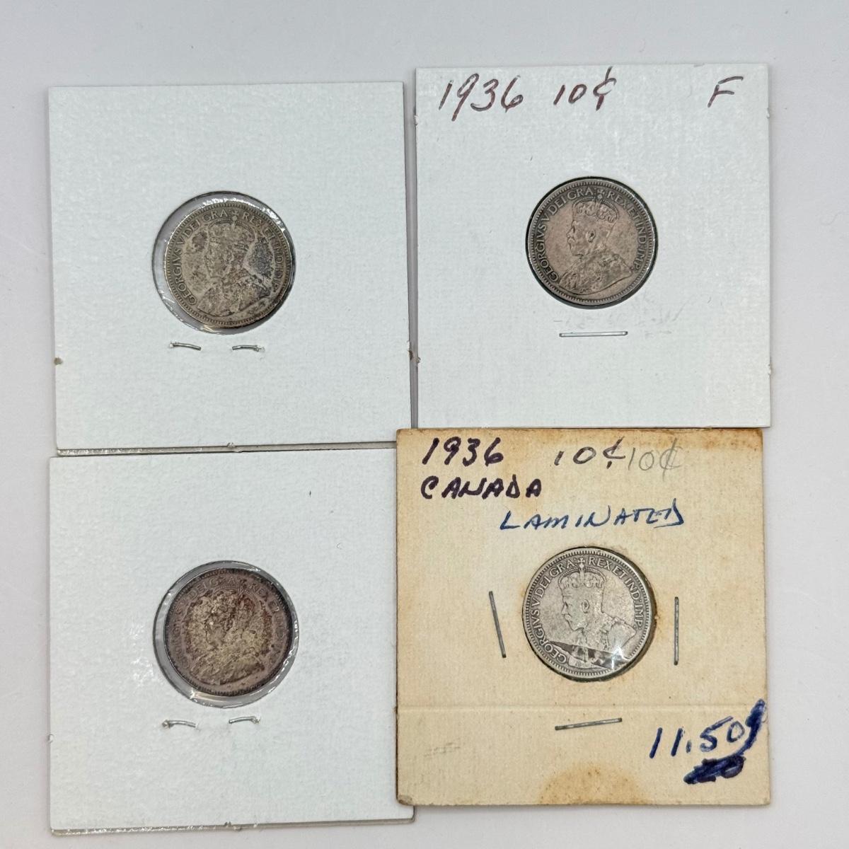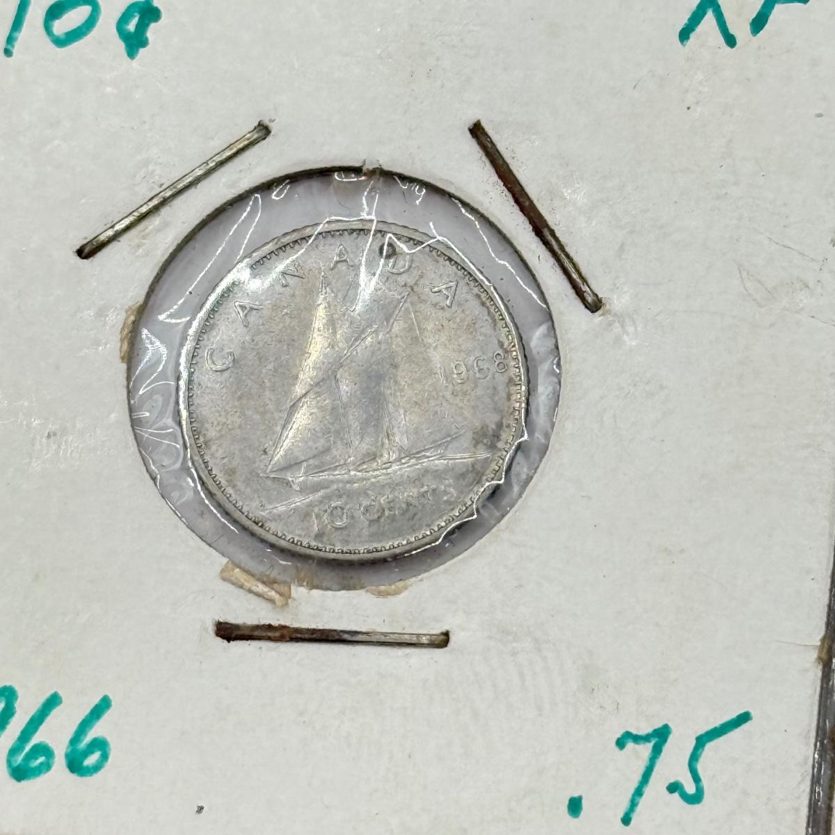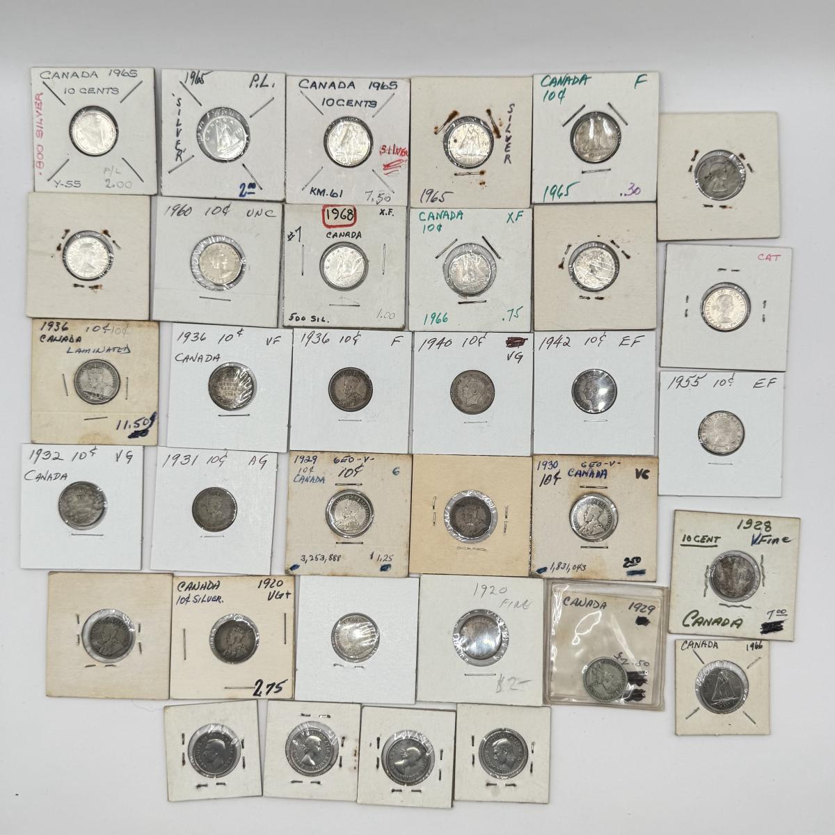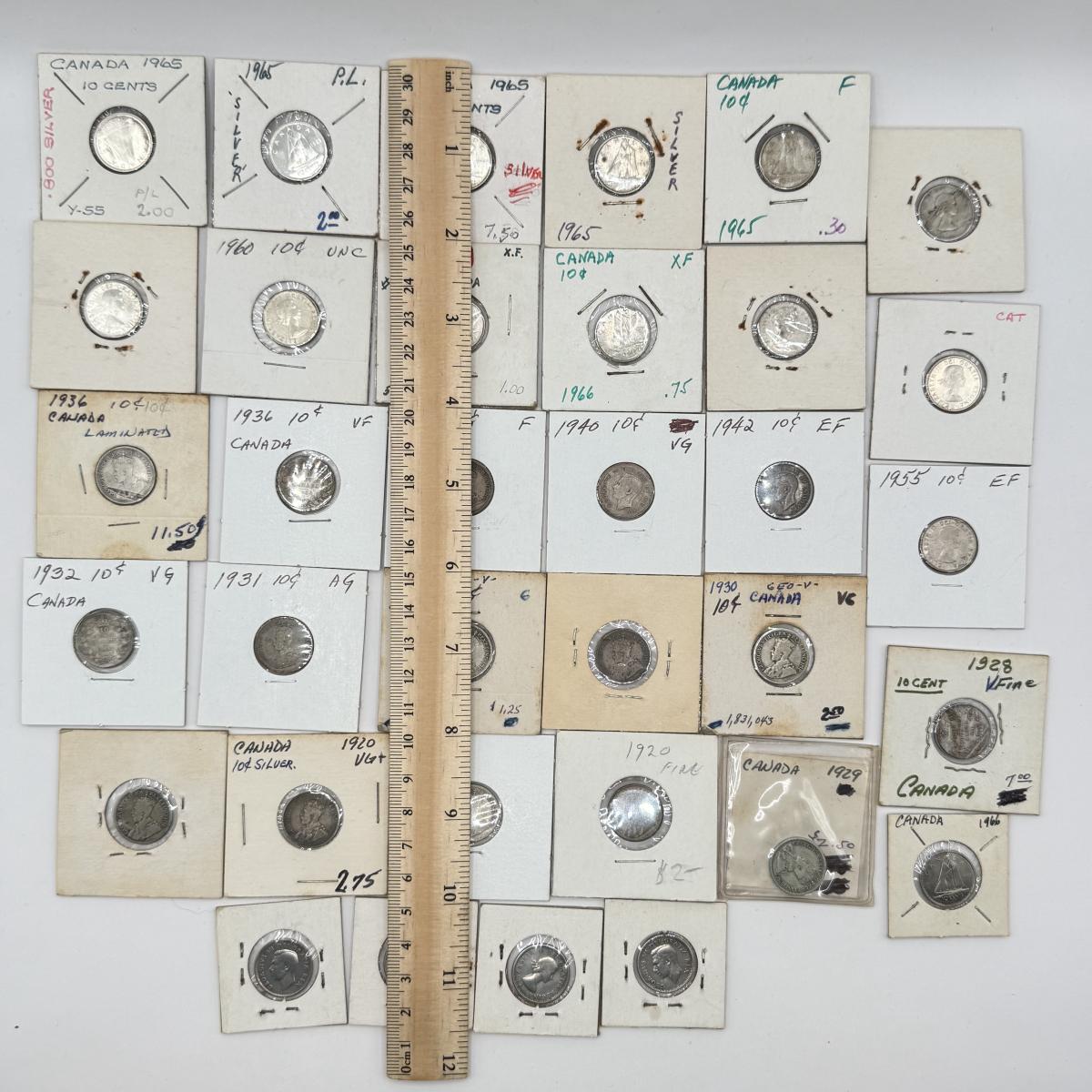 LOT 548J: 1920-1966 Canadian Dime 10 Cent Coins (80% Silver, 20% Copper)