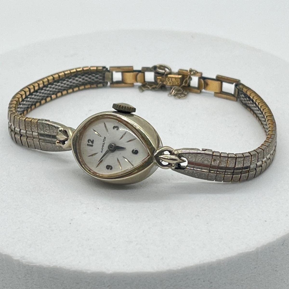 LOT 549F: Vintage Hamilton 14K White Gold Ladies Watch - Works!