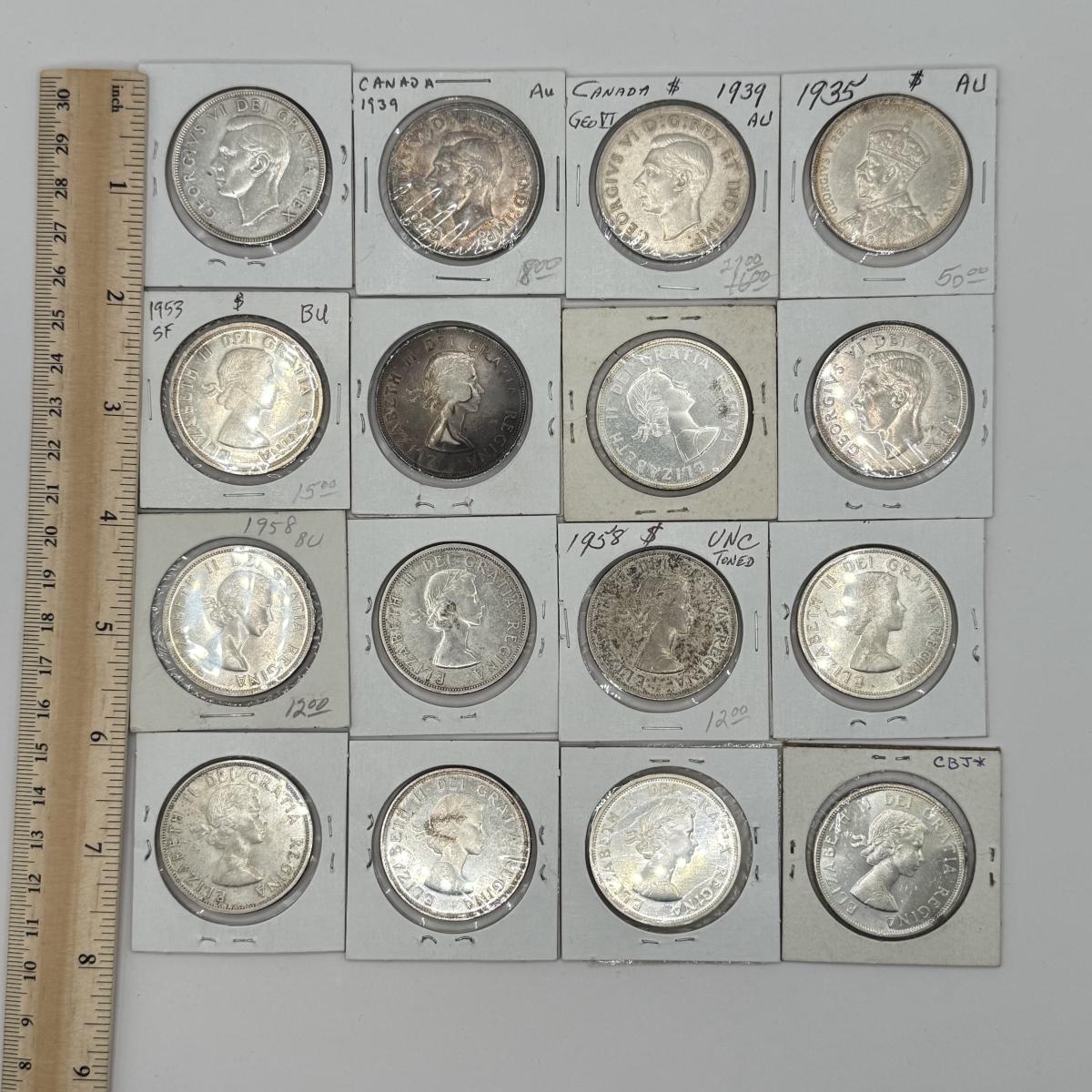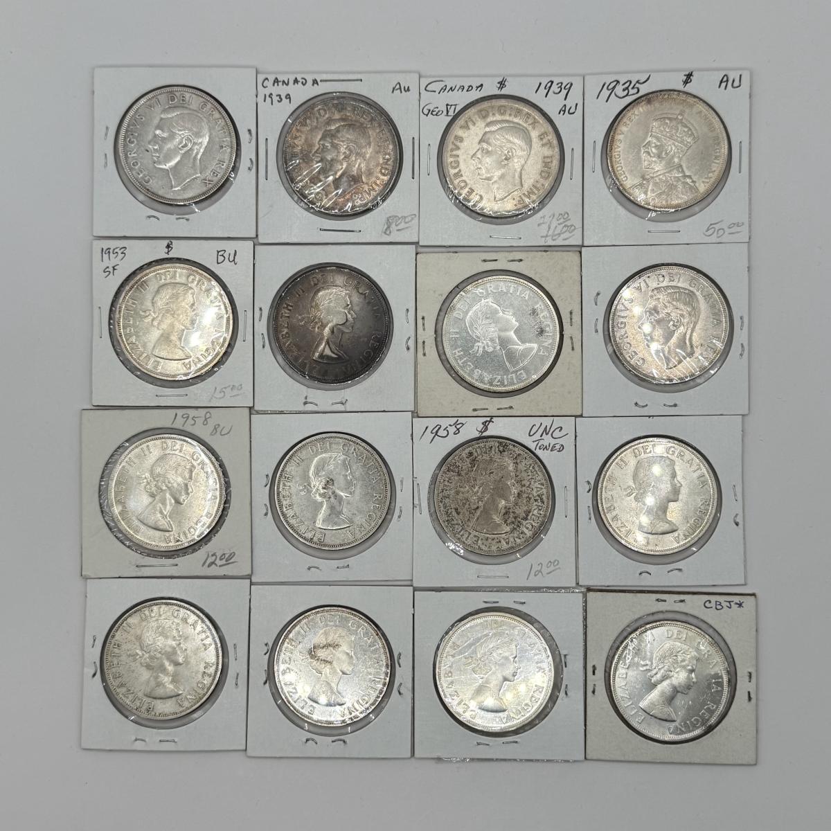LOT 549J: 1935-1964 Canadian One Dollar Coins (80% Silver)