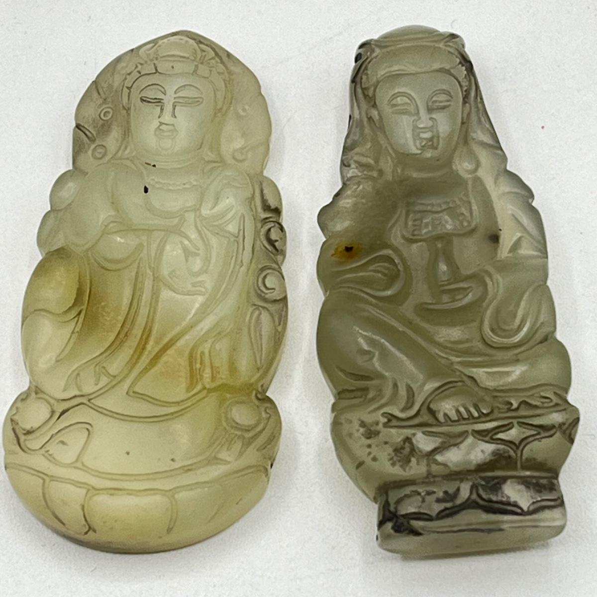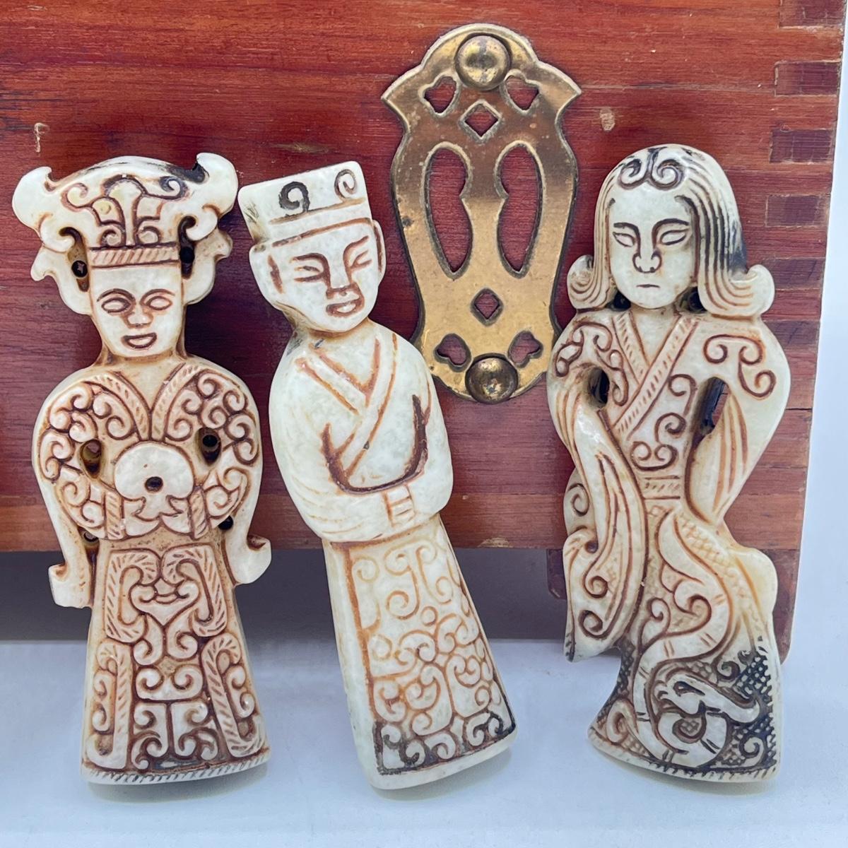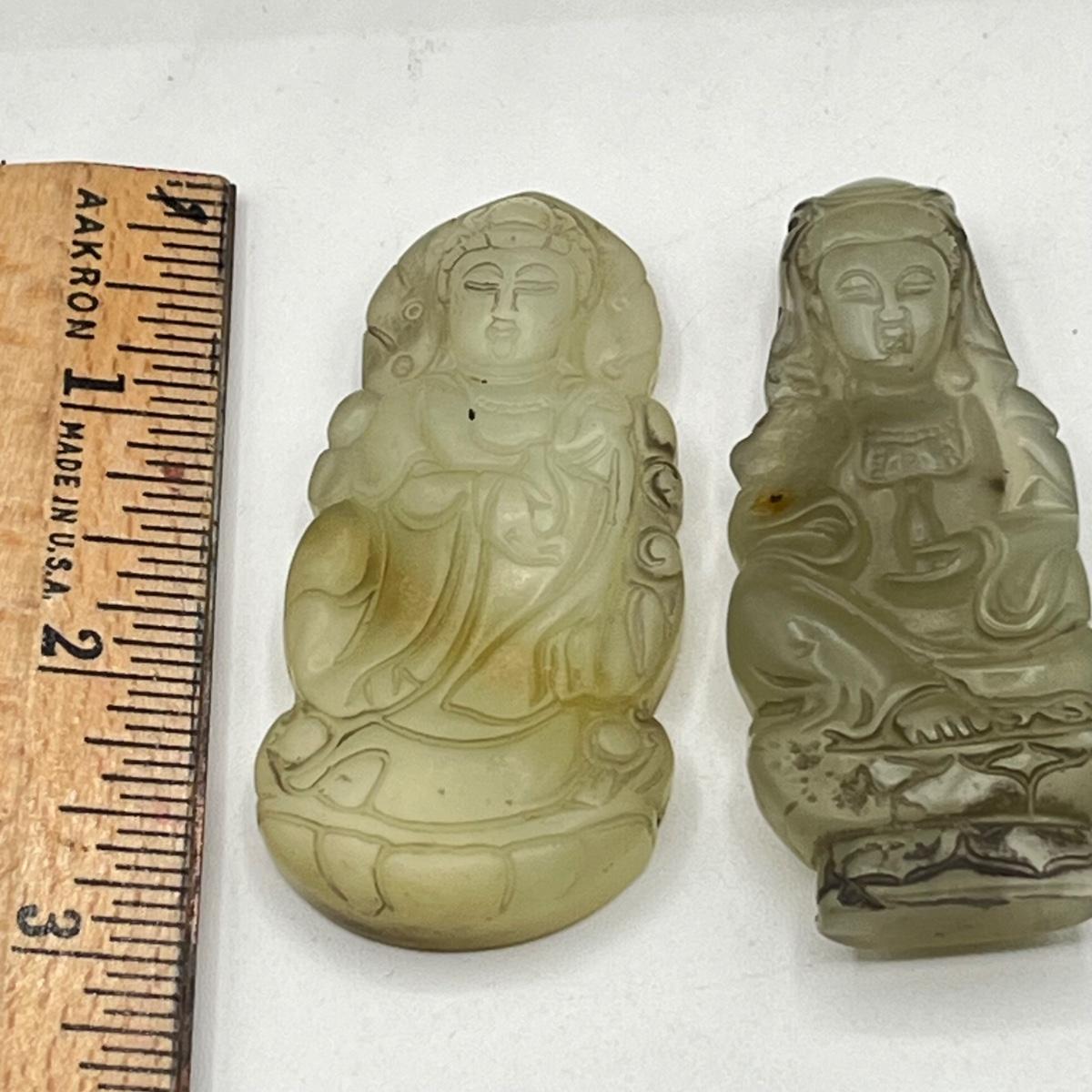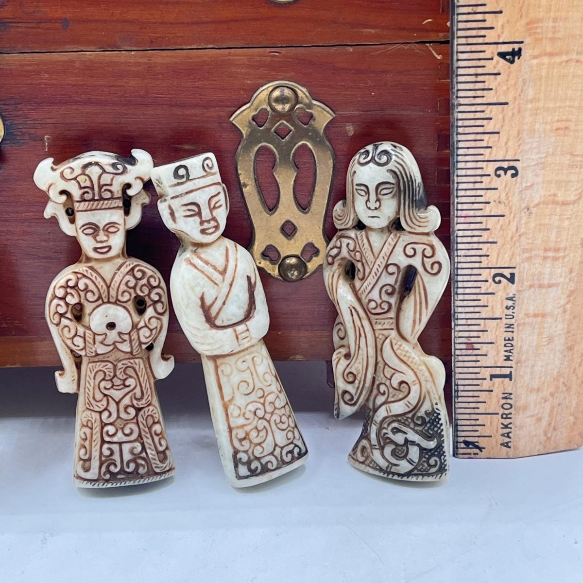 LOT 54B: Collection of Hand Carved Oriental Jade Pendants + More in Wooden Trinket Box
