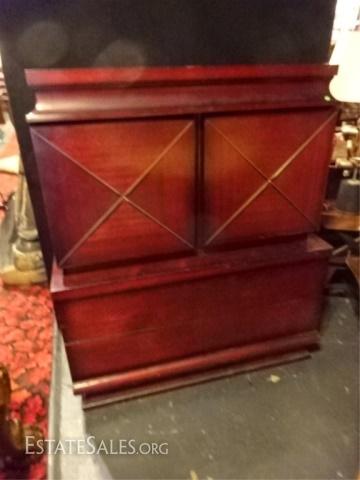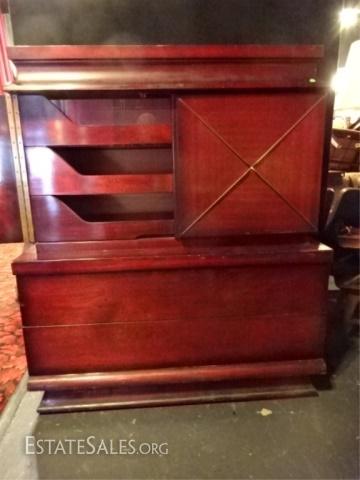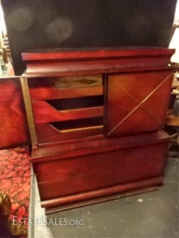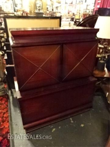 LOT 54D: 5 DRAWER MAHOGANY CABINET, 2 DOORS OVER 2 DRAWERS, GOOD CONDITION WITH SOME SURFACE WEAR, APPROX 54" X 43"