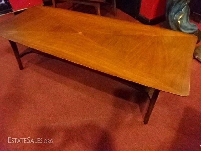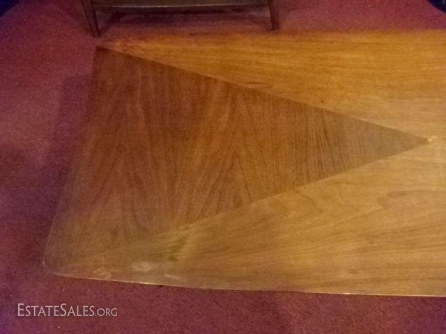 LOT 55: 2 PC MID CENTURY MODERN TABLES, CIRCA 1950's, COFFEE TABLE WITH 2 TIER SIDE TABLE, VERY GOOD CONDITION, COFFEE TABLE MEASURES 52" X 21" X 15", SIDE TABLE IS 29" X 19" X 21", SKU6306.02 H345