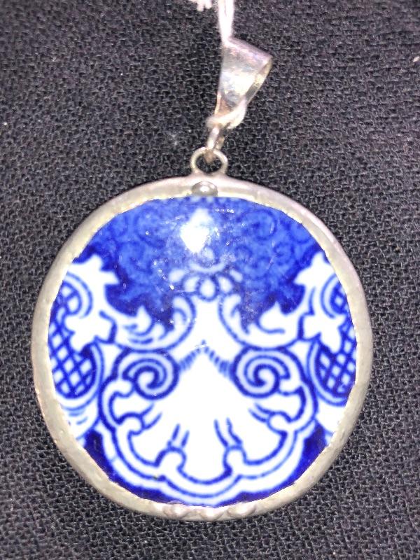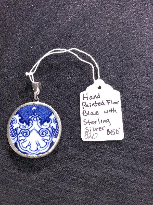 Unique Sterling Silver Hand Made Frame with Hand Painted Flow Blue on Porcelain