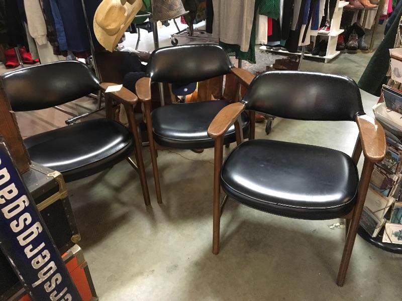 Lot 55 3 vintage mid century modern armchairs by Paoli. Made from solid walnut and all three have the original black leather upholstery/ These chairs are awesome and in fantastic condition with no repairs or damage just minor wear consistent with age. They are ready for your house!
