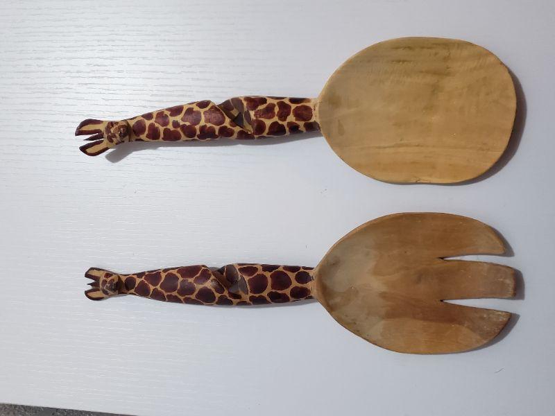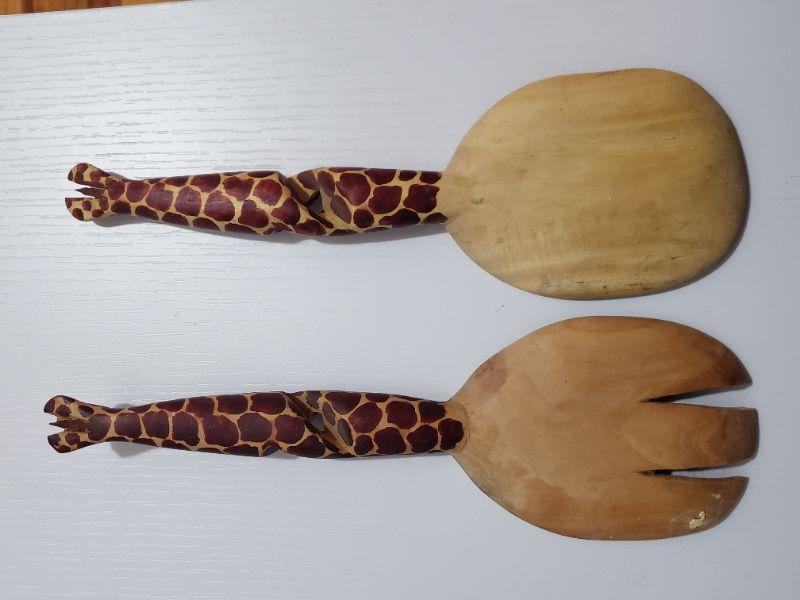 Lot 55: Handcarved Wood Giraffe Serving Utensils