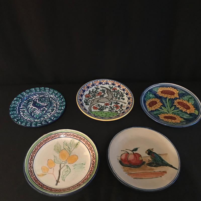 Add color to your everyday with these five Mexican style plates. All have wire hangers on backs, One is signed from Mexico. Measurements range from 9”-10” dia. This lot is available for shipping or local pick up in Asheville, NC.