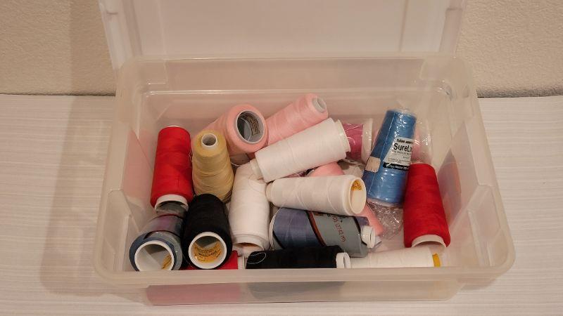 Lot 55: Vintage Bundle of New and Used Sewing Thread (clear tote not included)